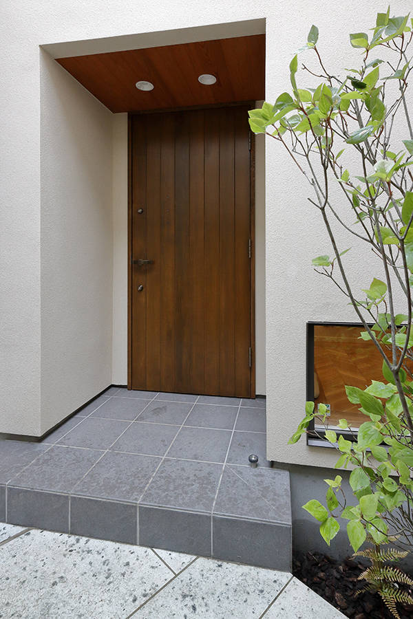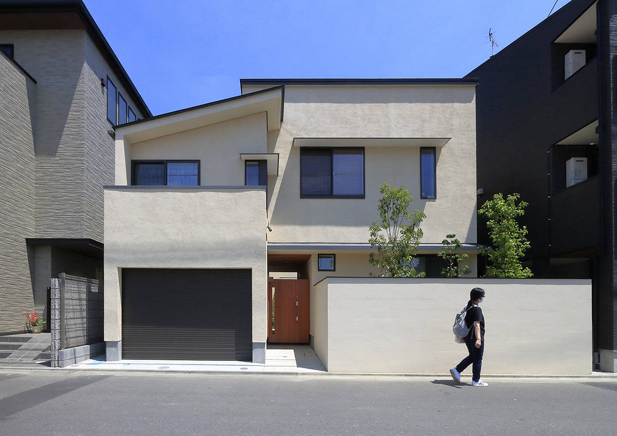 多摩川にほど近い2世帯住宅。 周囲の環境からプライバシーを守るという観点で