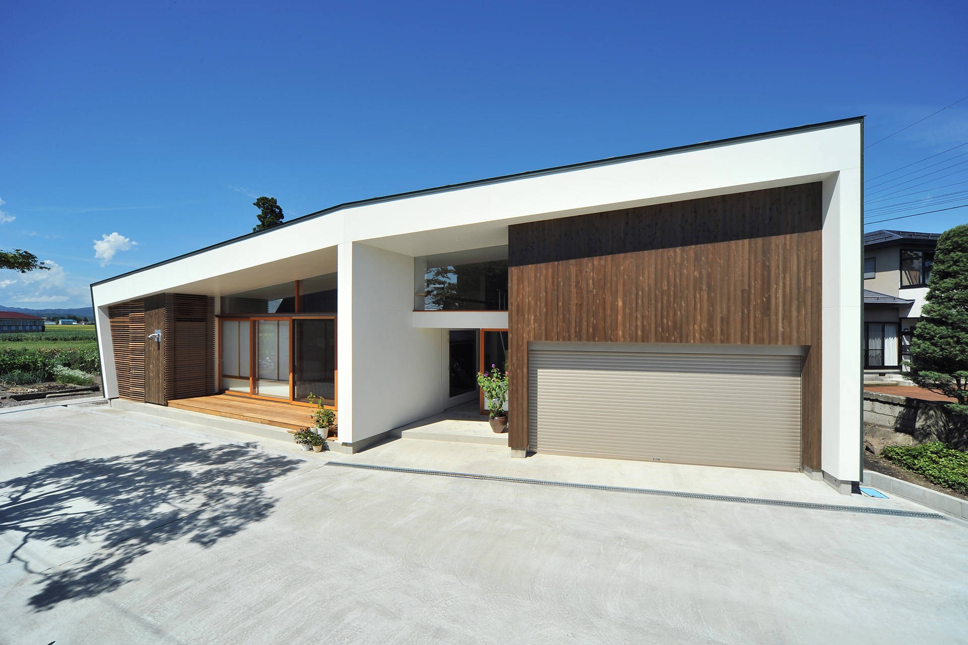 クライアントから求められた事は、昔から大切に育ててきた大きな庭を生活に取り込む事と、豪雪との関わり方を楽にする事。