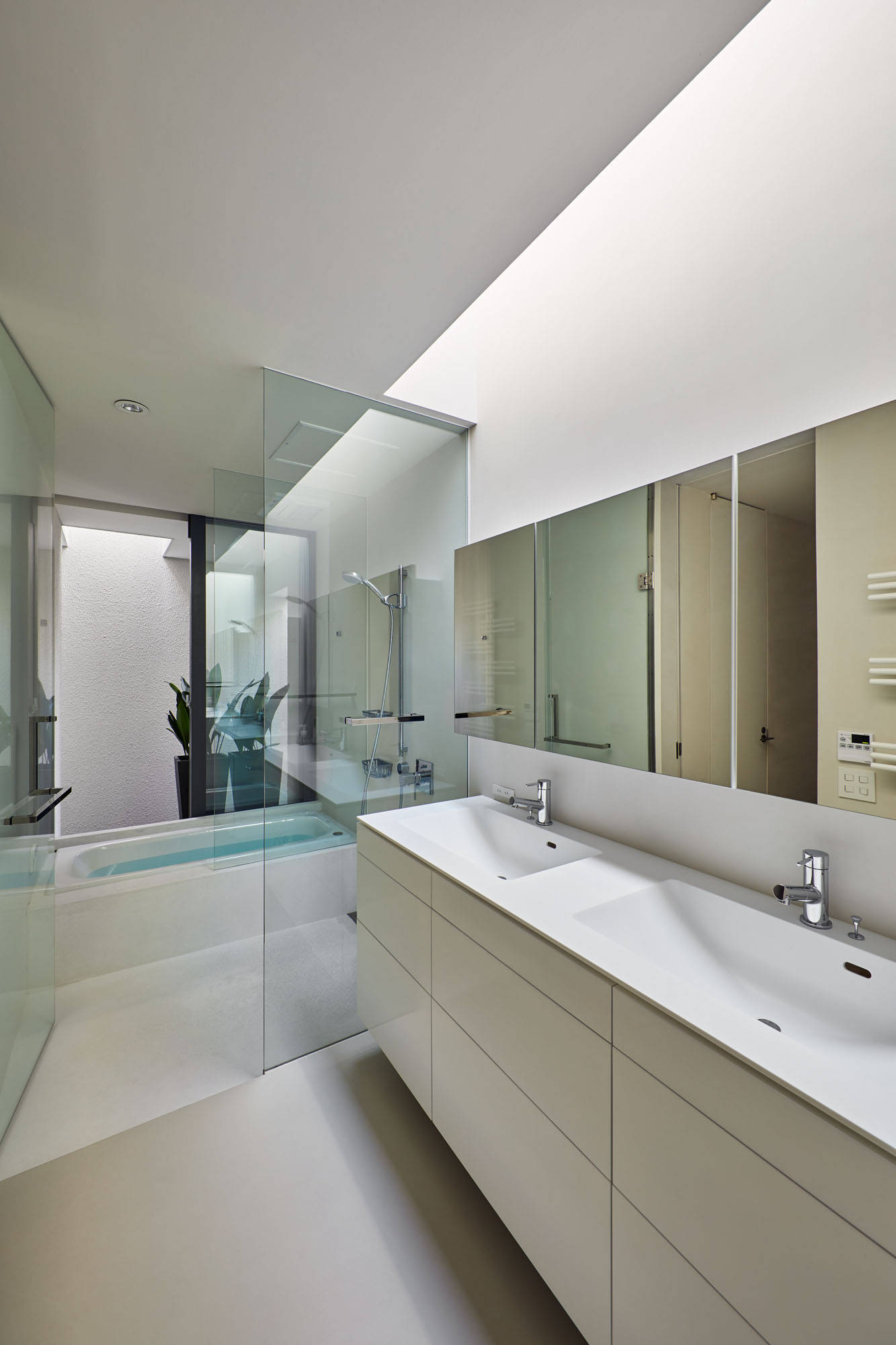 擁壁と2Fボリュームの間に設けられた60cmの隙間を介し、