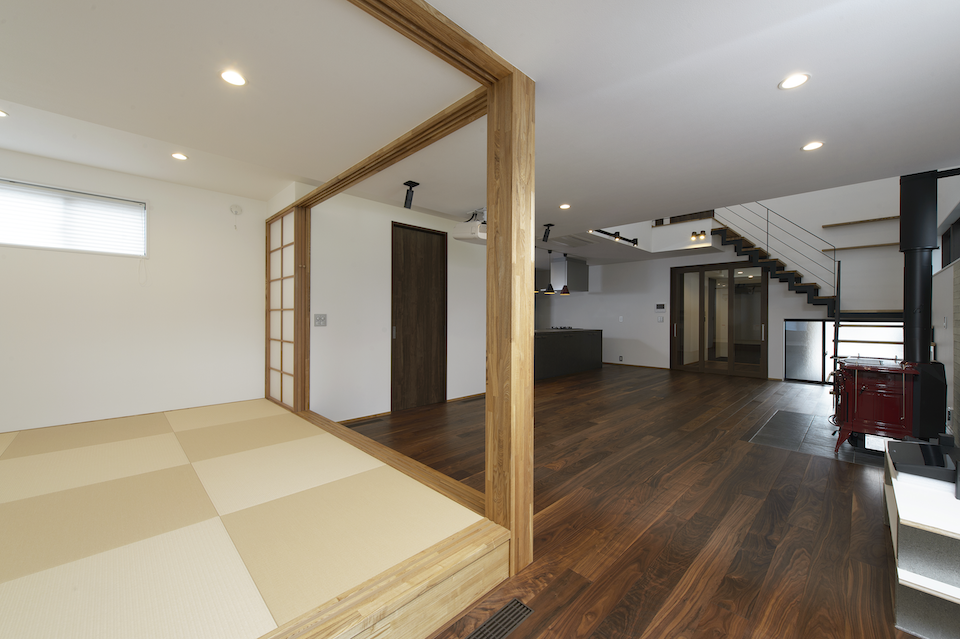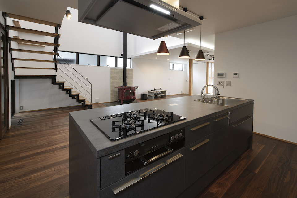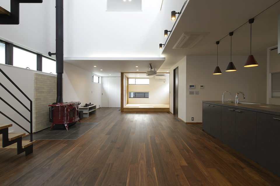 青森県津軽地方の伝統的な建築様式である雪の季節に人の通行を許す軒下空間「小見世(こみせ)」に着想を得た深い庇が特長の住宅。積雪荷重を分散させるために屋根形状を雛壇状に計画しました。最上部にハイサイドライトを設けることで、四季を通して変化に富んだ気持ちいい陽の光を室内に導き入れることができます。また、厳しい自然環境に耐えるために焼杉張りの外壁を採用し、城下町である弘前の街並みの一部分としての役割を担うことを目指しています。