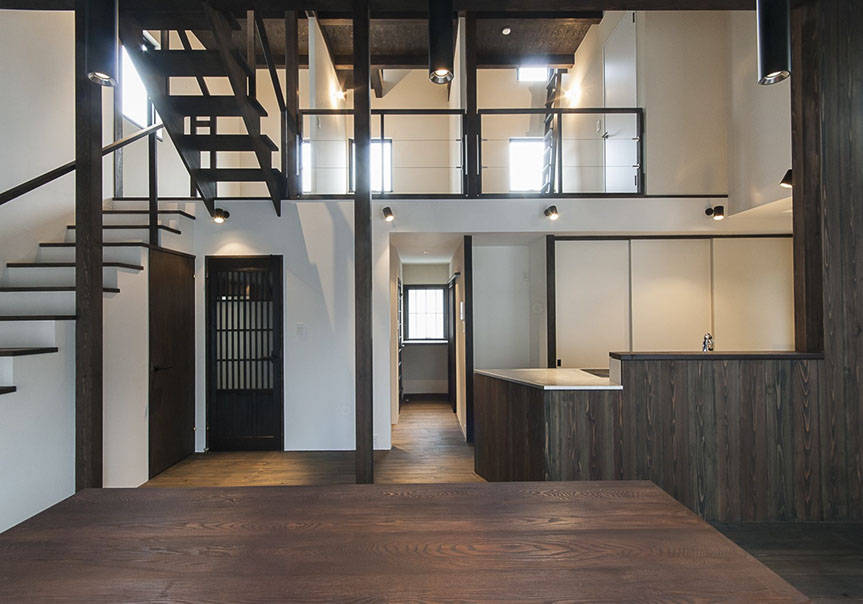 スキップフロアのダイナミックな空間を持つ家で、家族のみんなの雰囲気をお互いが感じつつ生活できる家が出来上がりました。