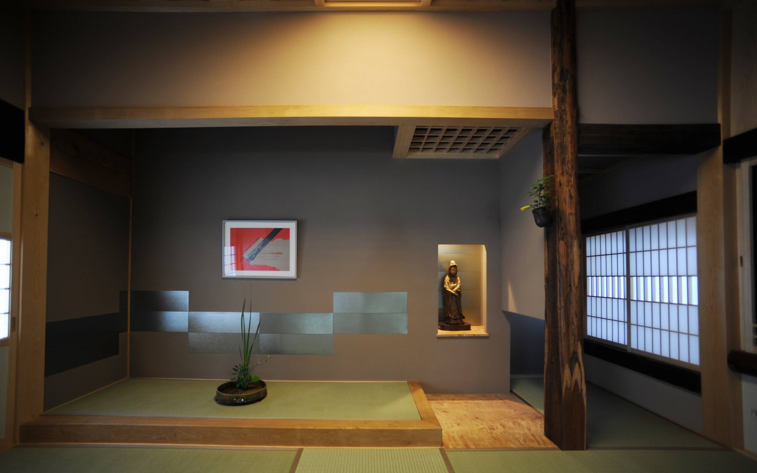 今回、老朽化によって現当主が建て替えを決意されたが、歴史を刻んだ住まいへの思いから、柱や梁、建具や床材に至るまで、使用可能な古材はとことん使いながら、まったく新しいプランで設計した。