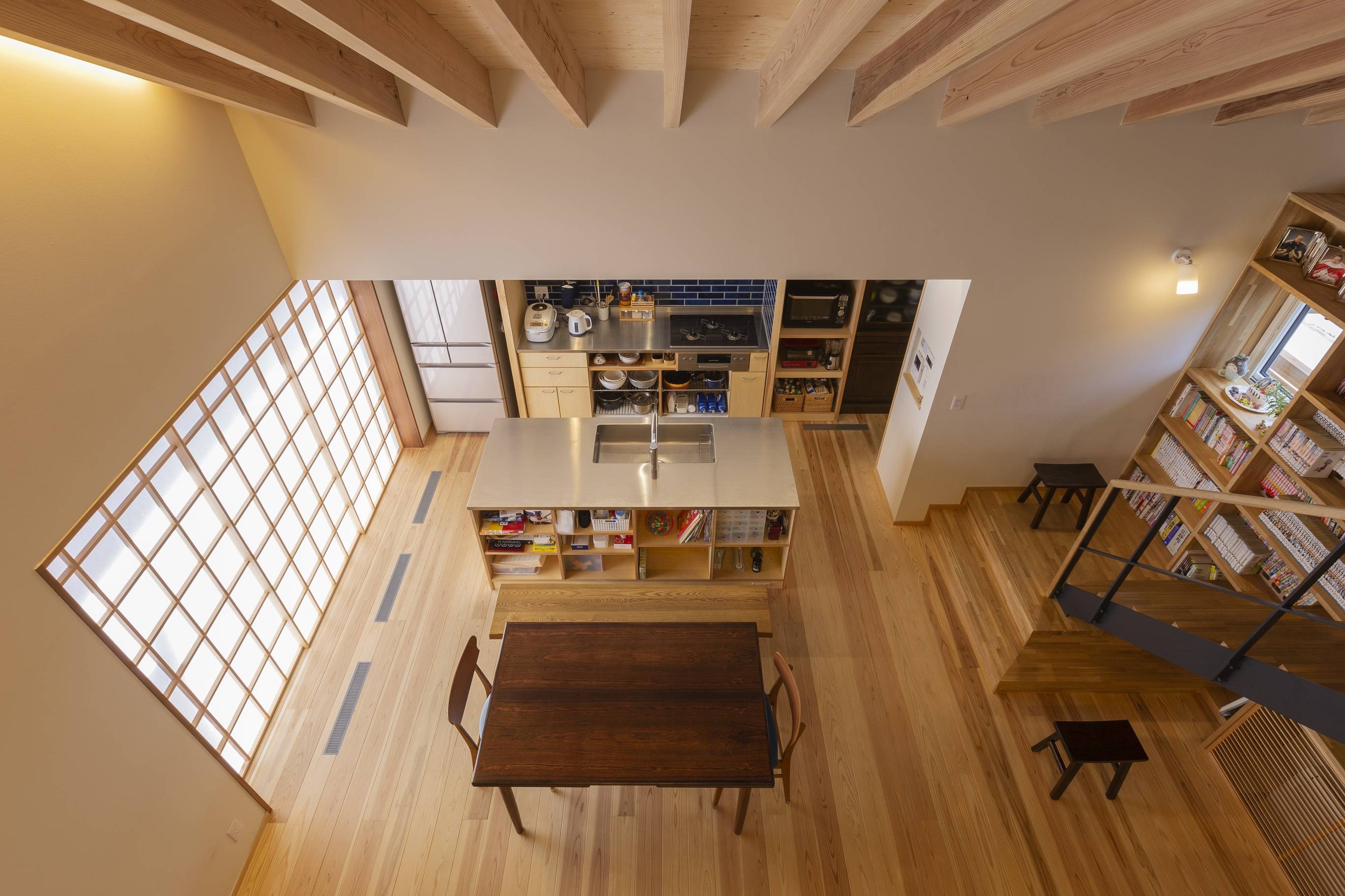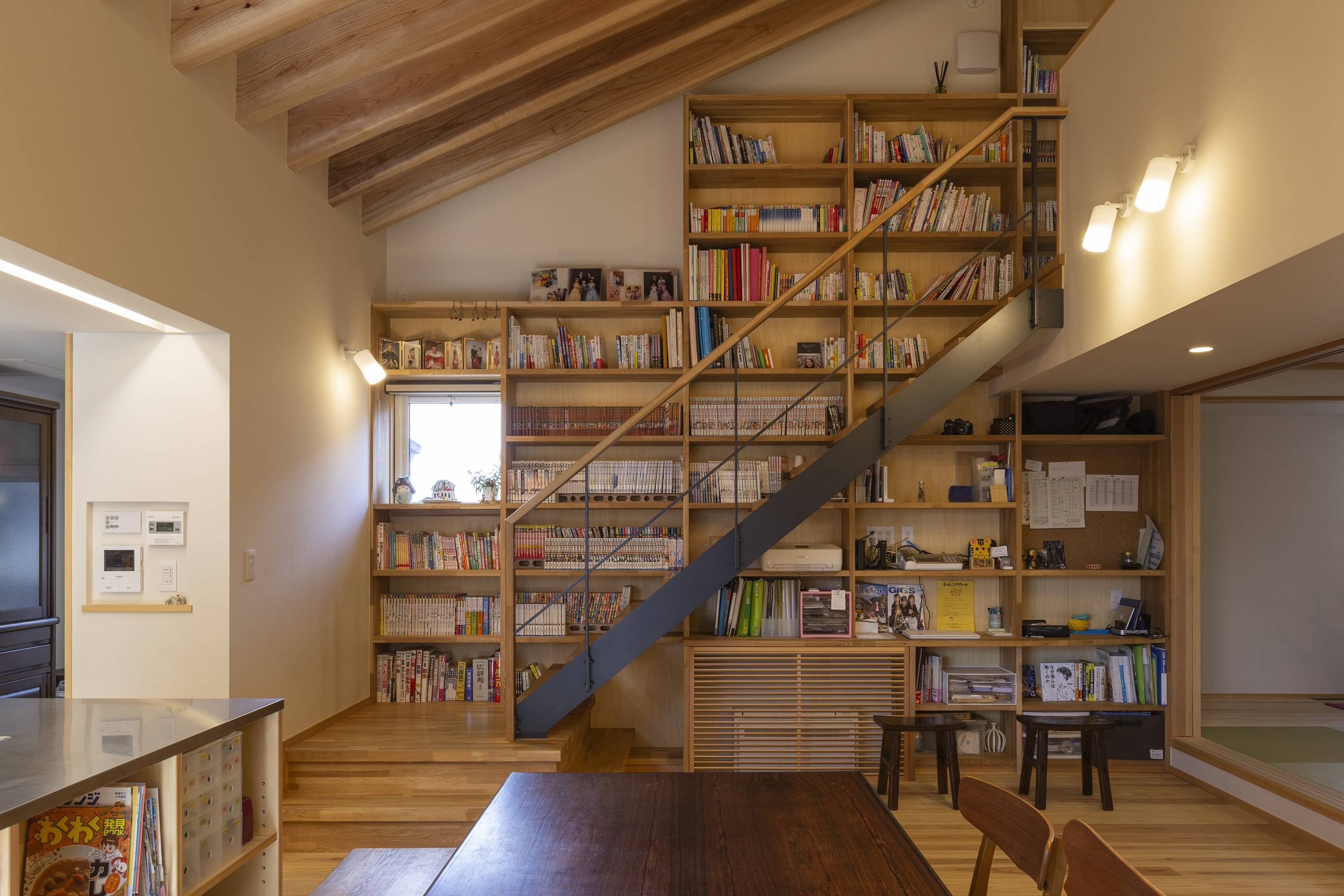 その中に階段ライブラリーとスタディコーナー