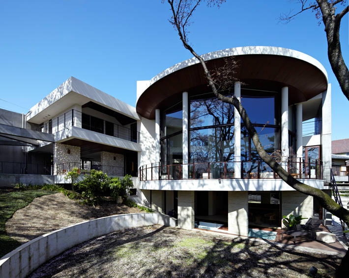 京王新宿線の聖蹟桜ヶ丘駅から徒歩15分、ゴルフ場を見下ろす傾斜地に建つ個人住宅。