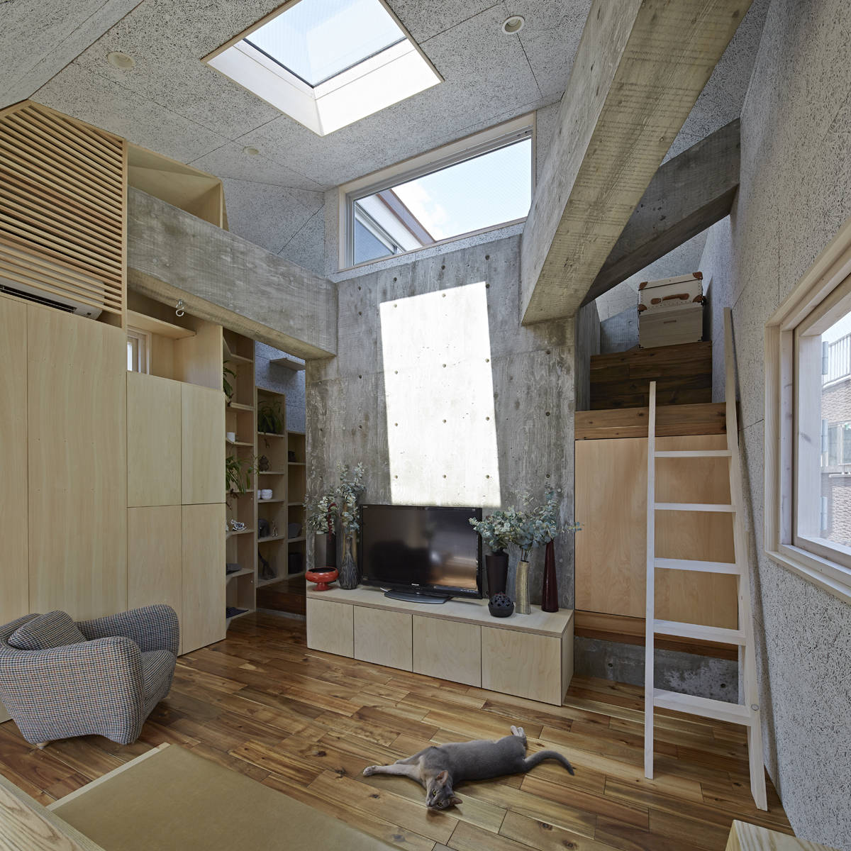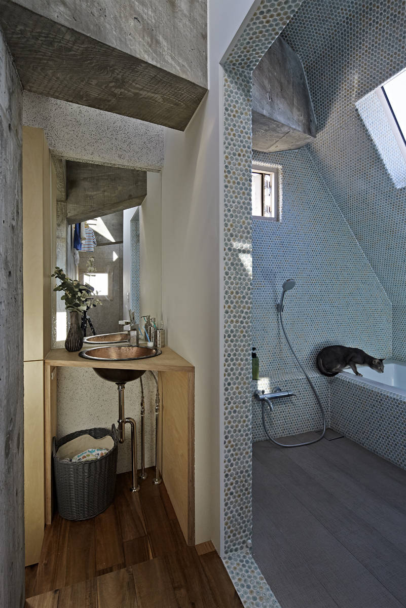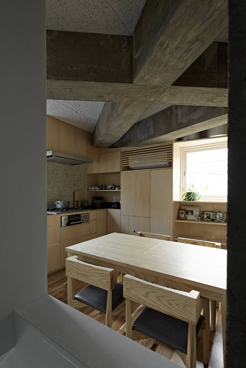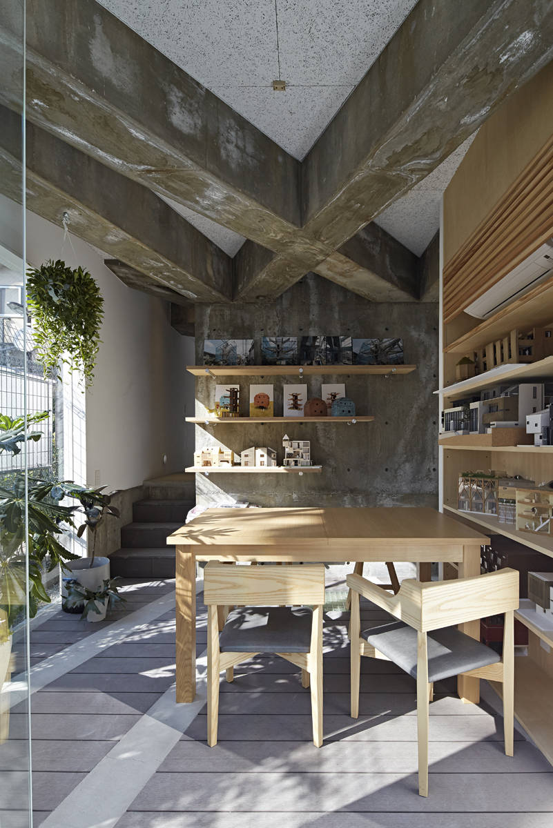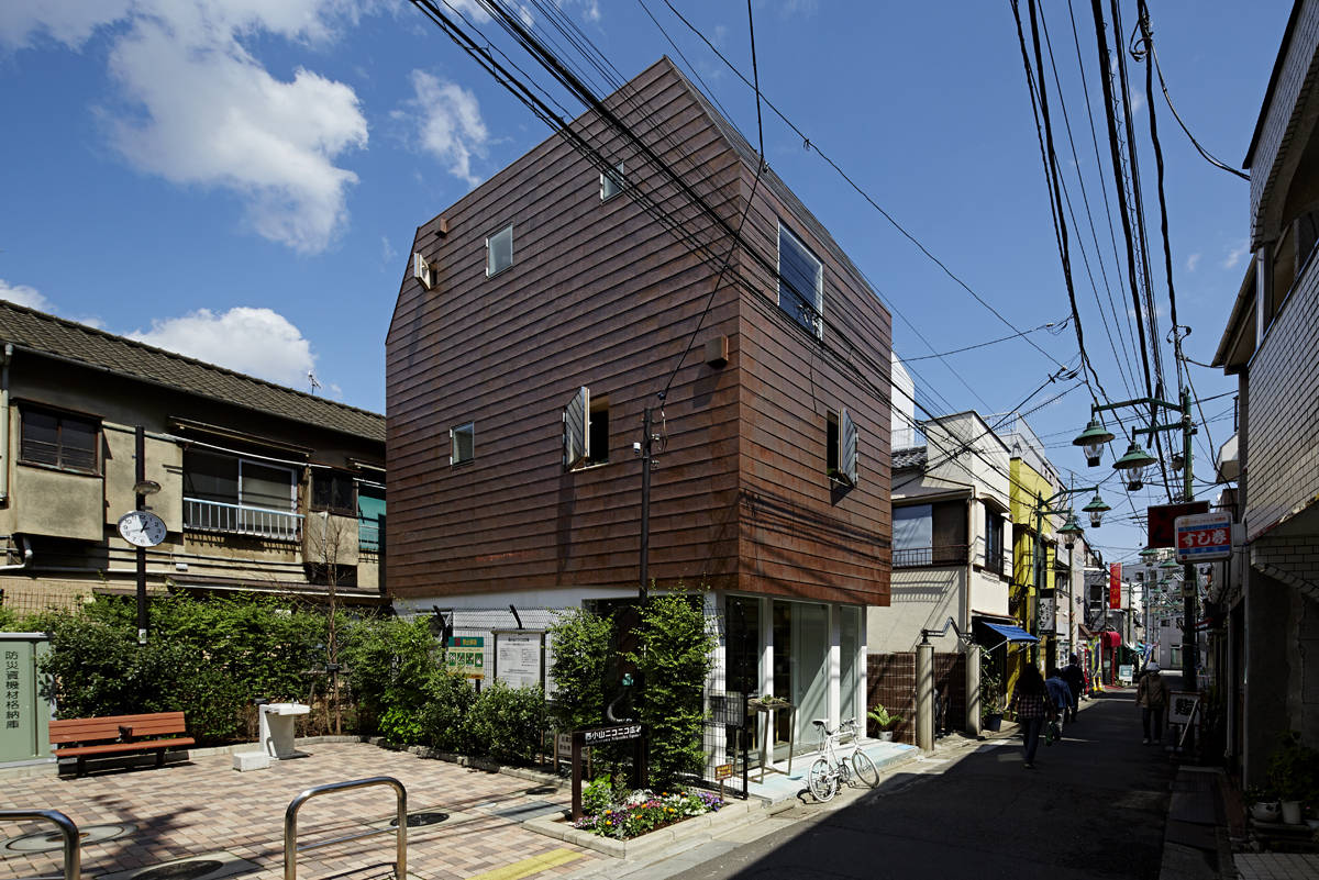 計画地は風情ある西小山商店街の一角にある。昨今は、軒並み商店が店を閉め住宅等になり、店が少なくなり商店街という機能がなくなってきている。今回の計画も事務所併用住宅の計画であるが、商店街に面する計画地であるため地域と建築との距離感は大事にしたいものである。