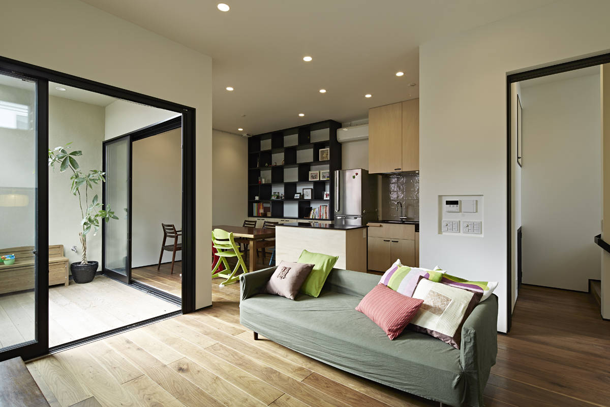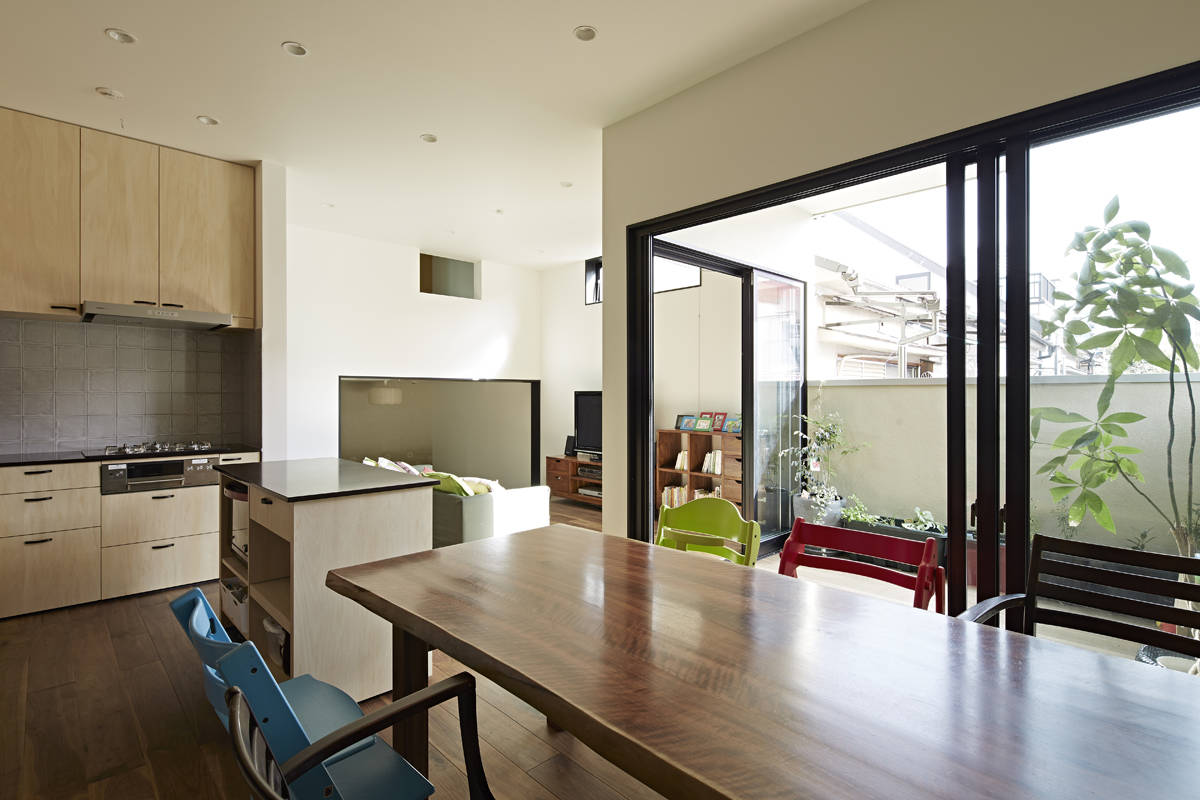 下町情緒あふれる東向島に建つ夫婦2人とその母親、そして3人の子供が暮らす二世帯住宅。