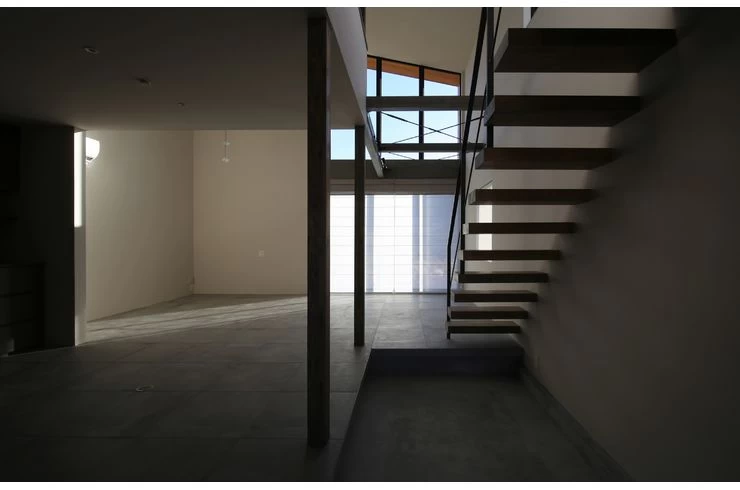 敷地の中の居心地の良い場所に吹抜けを設けて、空を感じることができるように。