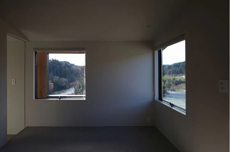景色の良い方向にピクチャーウィンドウとして風景を切り取る正方形の窓を随所に配置しました。
