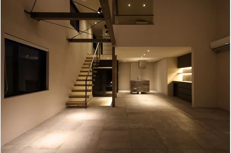 アウトドアを楽しみやすいように大きな土間を設けた外部とも繋がりやすい間取りです。