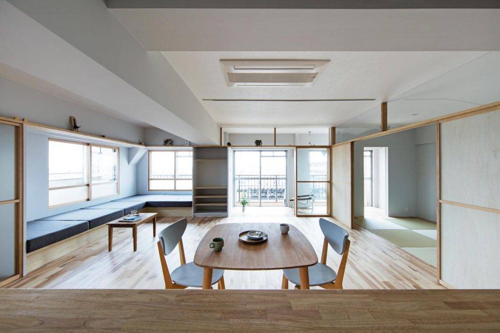 建具は仕切るための道具だけでなく、場と場の多様な関係を取り結んだ、日射や温熱や通風などの環境因子を調節する境界面にもなる。制約の多いマンションや団地の改修では、建具の効果が発揮されやすい。そのような、建具の多元的(マルチプル)な境界面としての可能性の一端が立ち現れている。