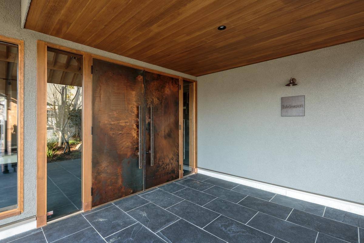 本計画はアパレル事業をされている会社様のオフィス兼ギャラリーの新築計画です。本計画地は滋賀県近江八幡市の八幡山の麓に位置し、水郷巡りの船着場の前という好立地な場所でした。この素晴らしい計画地でクライアント様は建築自体が目立たず自然に溶け込むような建物を望まれました。