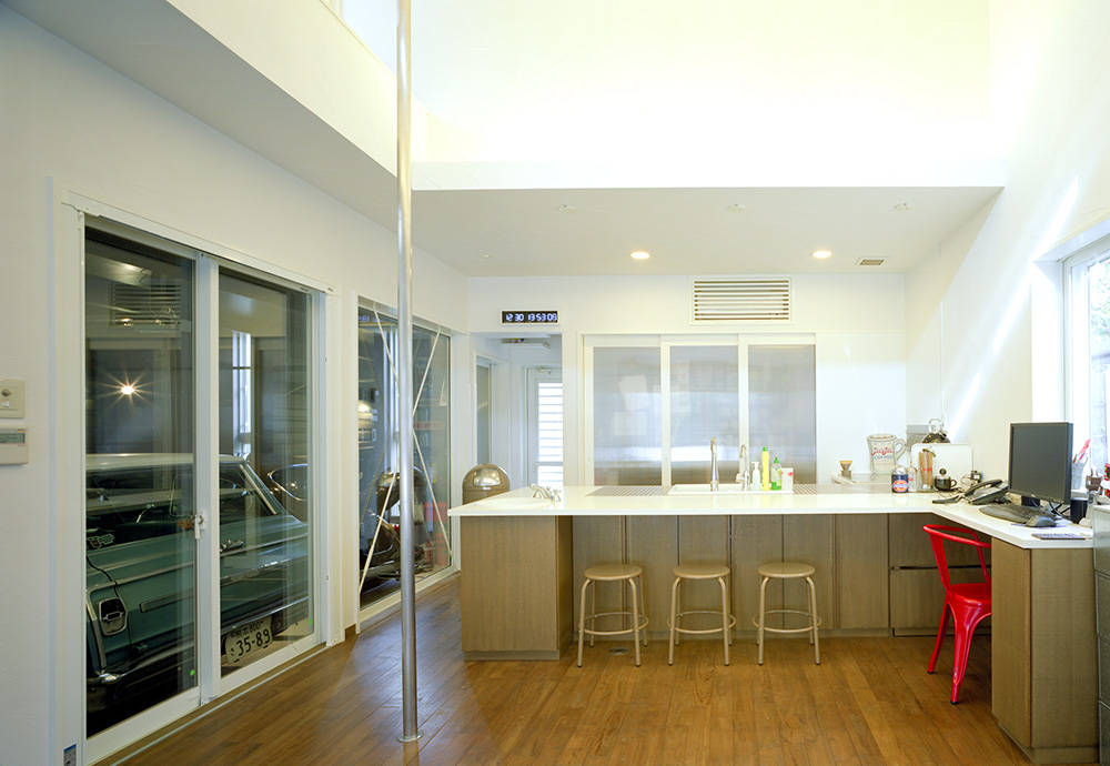この住宅は「Garage House」という名の通り、ガレージと家が一体となった住宅です。車を愛するご夫婦と3人の子供達が毎日愛車を見ながら感じながら暮らせる家となっています。