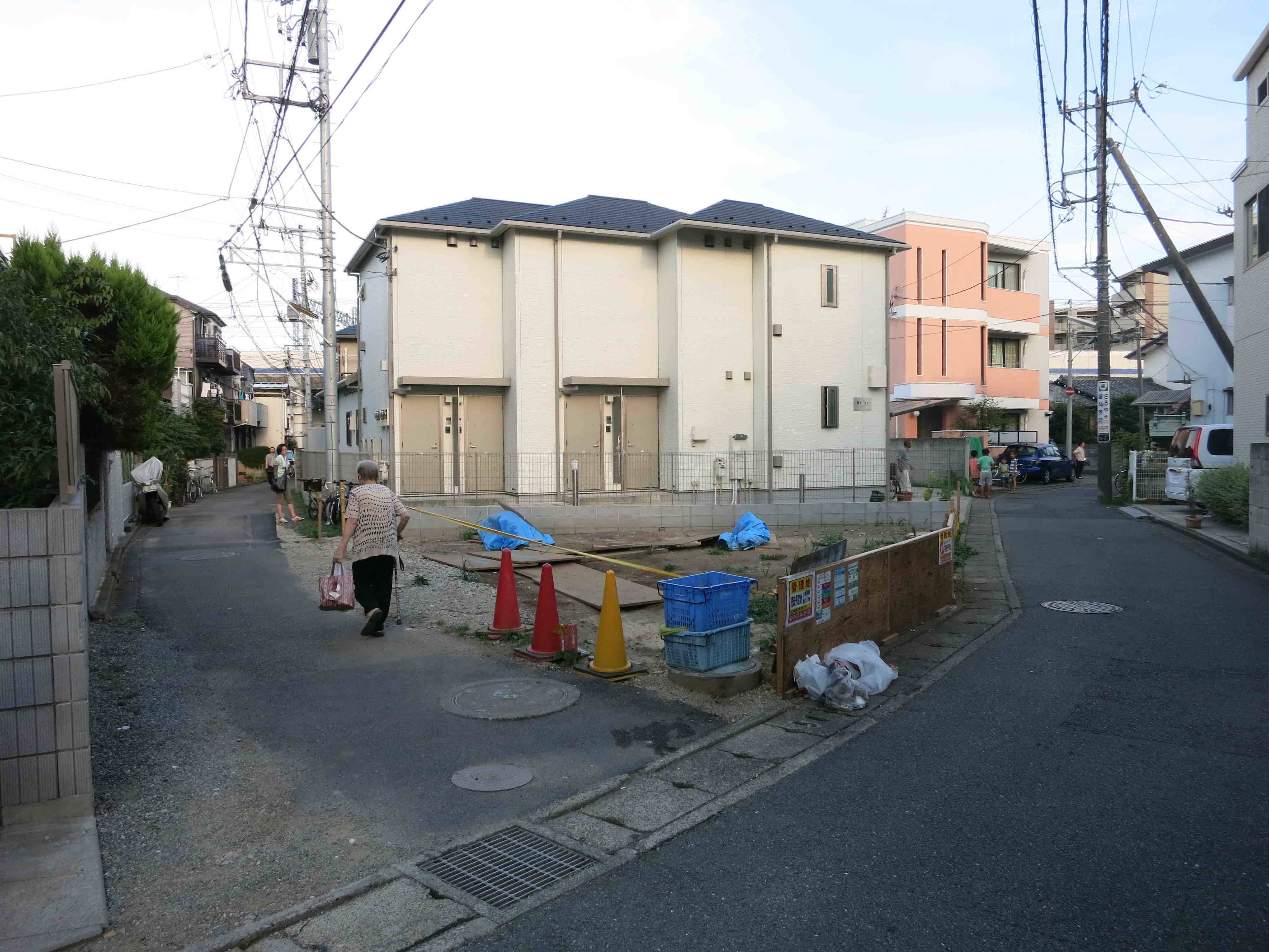 敷地は住宅密集地の三つ又道路の交差点に位置する、三角形の狭小地である。商店街や駅が近くにあるため、道路は人通りが比較的多い。