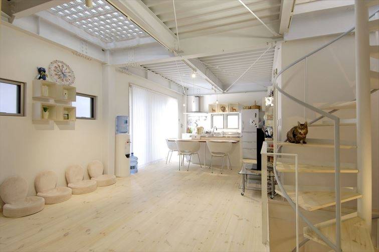 4匹のネコ達が楽しめるような工夫も凝らし、ネコドアにはじまり、ネコ穴、ネコ棚、にゃんグルジム等…