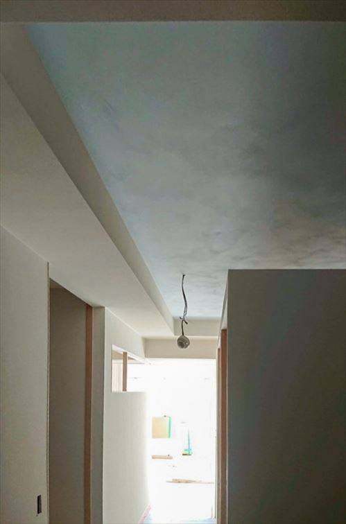 その部分を空に見立てて特殊塗料の刷毛仕上げを施すことで、日中は南側開口部からの自然光を受けて発散し、暗くなりがちな北側の個室まで光を届け、夜間は天井が照らされた光に包まれます。