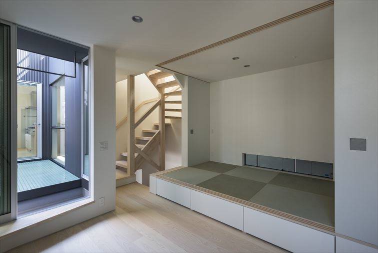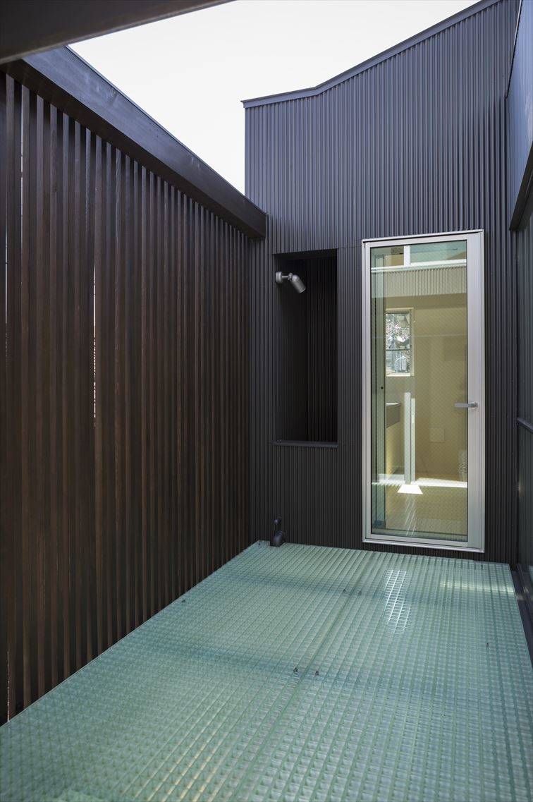 省スペースながらも、中庭やグレーチングバルコニー、屋上までをももち合わせる都市型のコートハウスです。