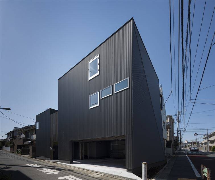 外観は折れた壁面によって、雑多に3階建てが立ち並ぶ街並みのなかで埋もれてしまうことなく、ささやかに主張します。