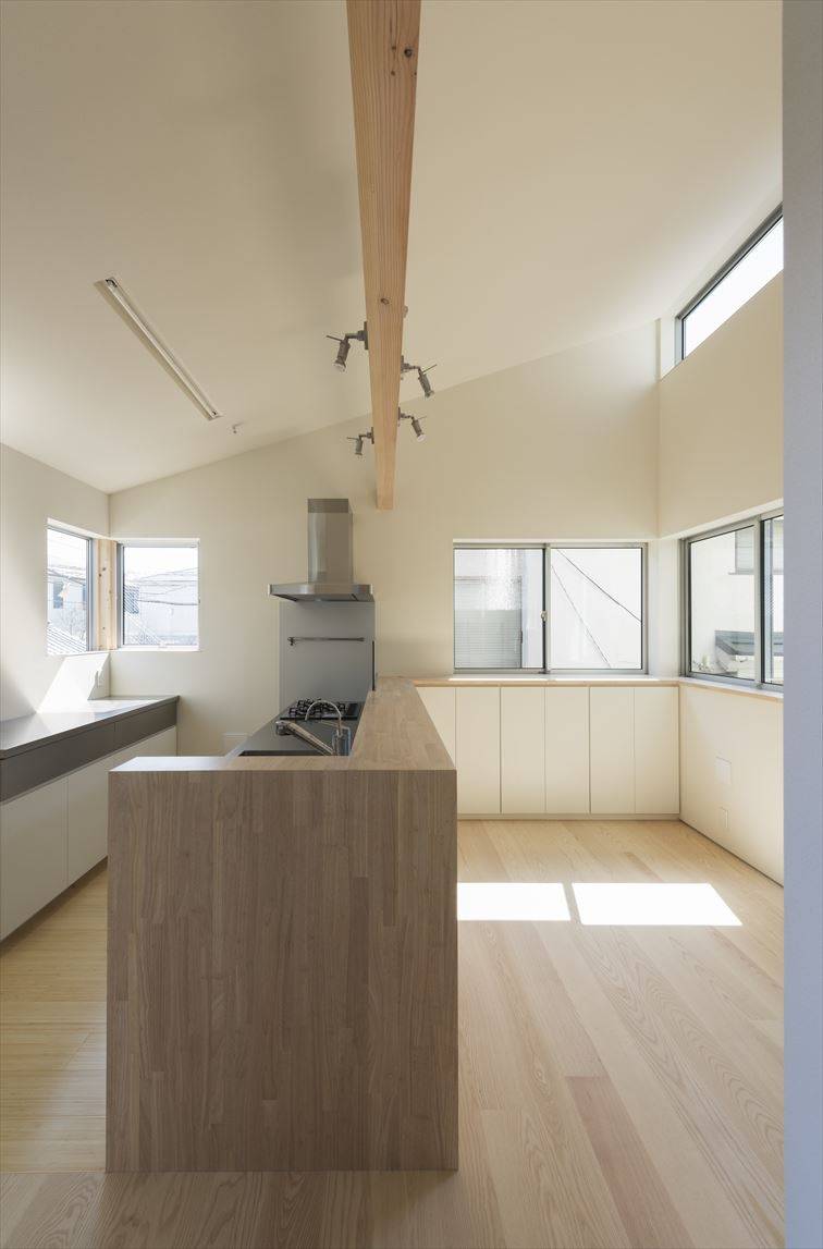 それ故に開口部の種類や大きさが限定されますが、周囲建物が密集する環境のなかでプライバシーを得つつも、空間に効果的な開口部のとり方や納まりを工夫しています。