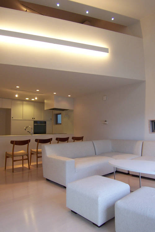 1階のLDKと2階の子供エリアはさりげなく中間領域で繋がっているため、プライバシーはしっかり保ちながら、気配が十分に伝わるつかずはなれずの間取りとなっています。