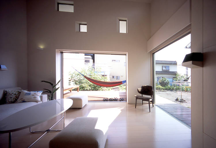 周囲を住宅に囲まれた狭小な敷地でしたが、南側にある広い畑は建築不可能な土地であり、将来にわたって維持される見込みであることから、良好な外部環境を建築に取り込むために最大限利用する設計としました。