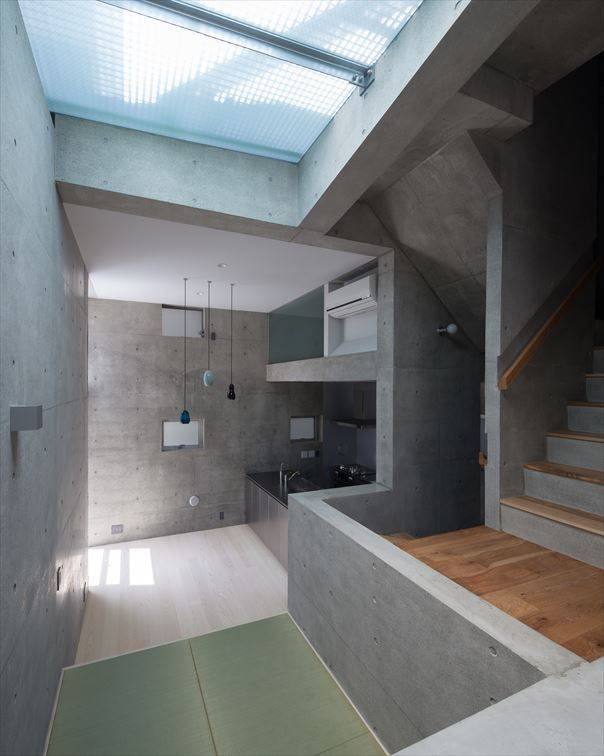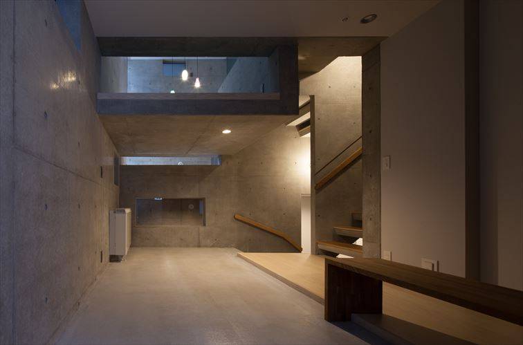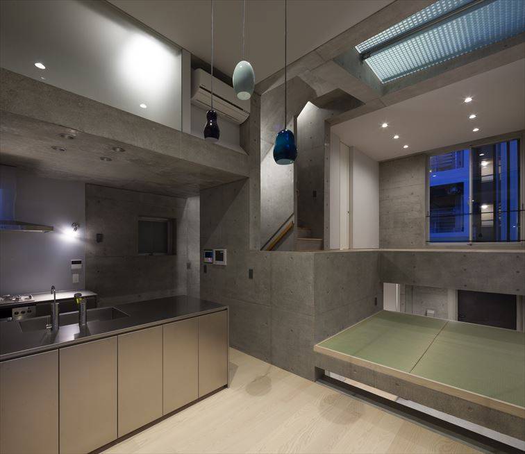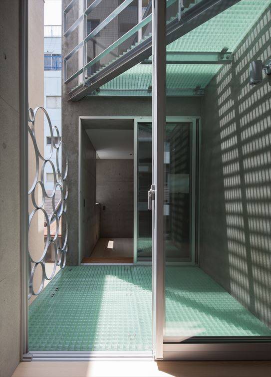周囲は高層マンションやビルに囲われた敷地ですが、内部の立体的な構成によって充分な明るさが得られると共に、空間に広がりや奥行きを与えています。