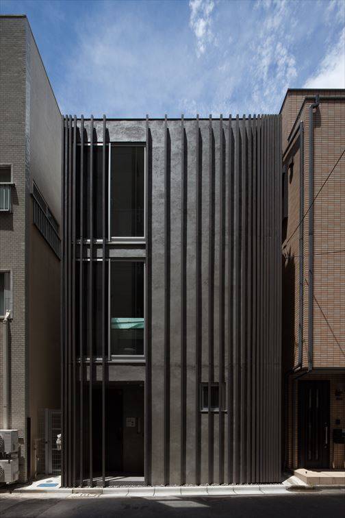 四角い建物が建ち並ぶ環境に対して、建物外観はルーバーのピッチを調整することで、柔らかい表情を与えました。