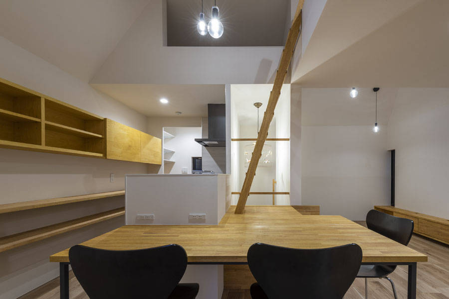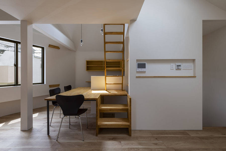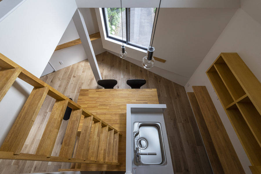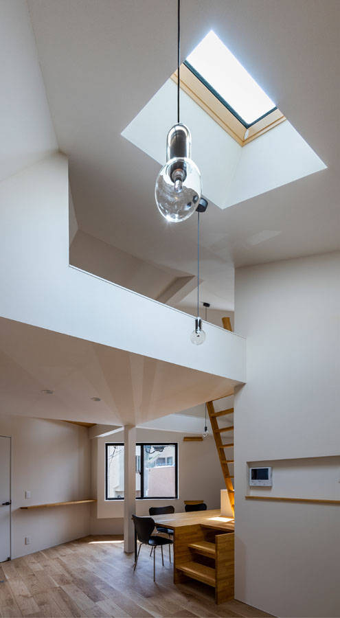 「2方向の隙間」を望む「2つのボリューム」は、それぞれの方向から、季節や時間帯、居場所によって異なる光、風、景色を内部へ取り込む豊かな住宅となった。