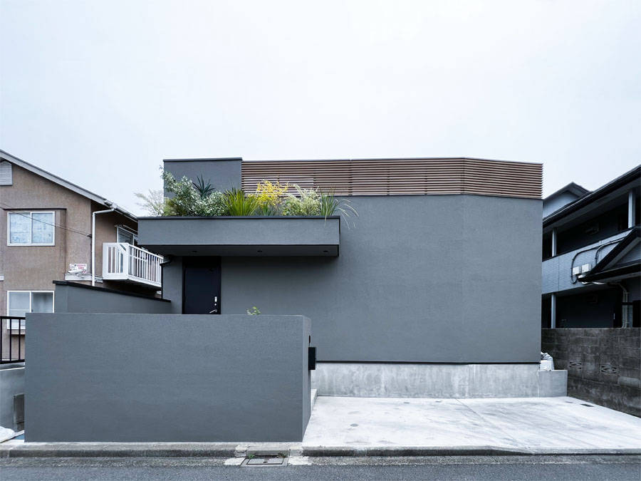 抜け道である前面道路の交通量が比較的多く、騒音やプライバシー性を考慮し内包する空間を創造する事が必然的に求められた。