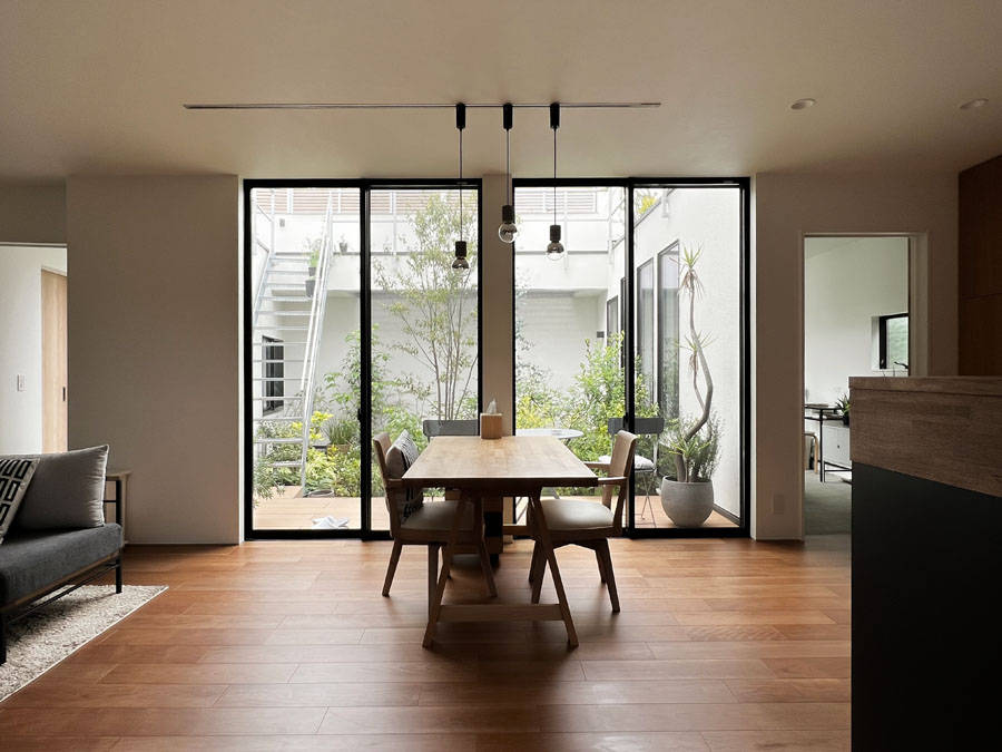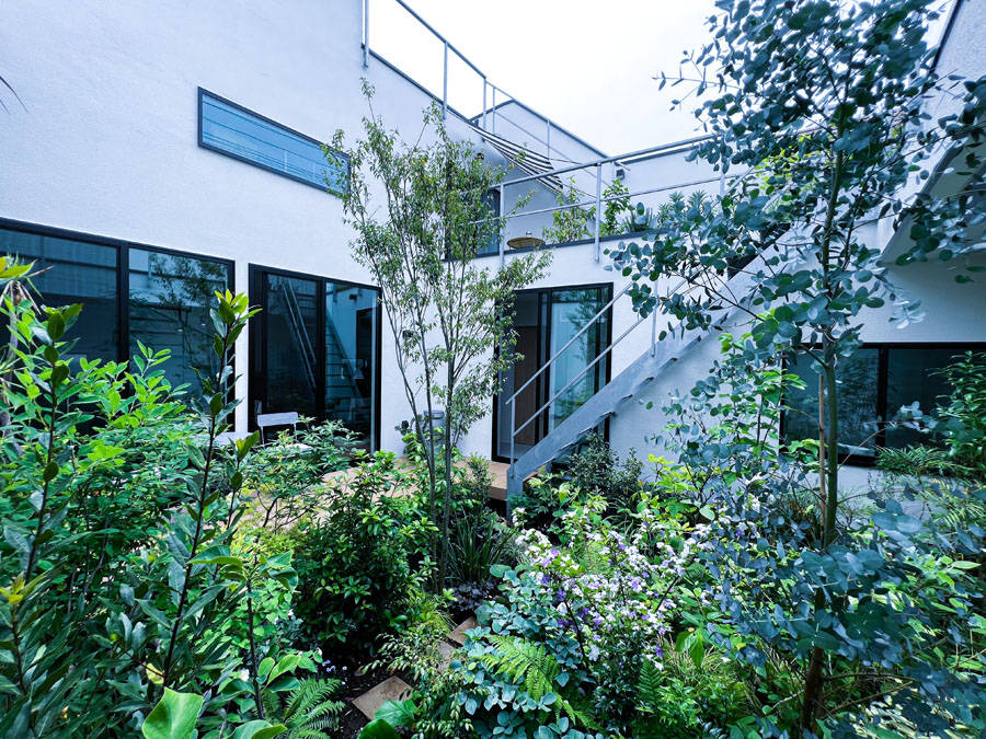 プライバシー性を高める用途の中庭は、どうしても閉塞感が生まれてしまう。