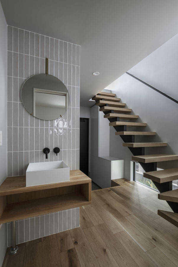 四季の移り替わりにより変化する日差しの角度、時刻にともなう太陽の動き、天候による空色の違い、シンボルツリーの葉が風でそよぐ様子、その表情豊かな外部空間が内部空間に常に影響を及ぼし、家の中にいても自然を体いっぱいに感じることができる。