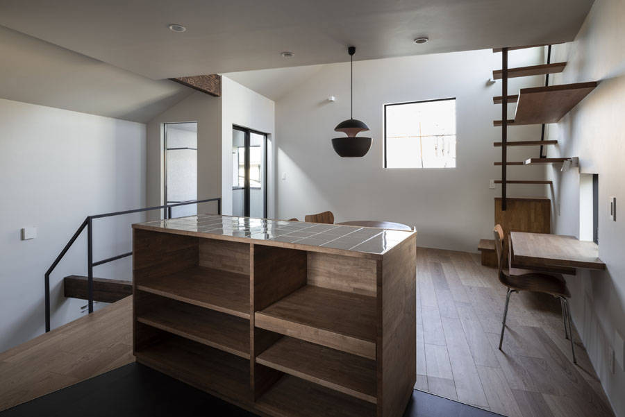通常の地盤高さでは1階空間は消極的な開口部が増えてくるが、この土地では防犯的な側面を弱めることなく1階の室内空間の開放性を高めることが可能となった。