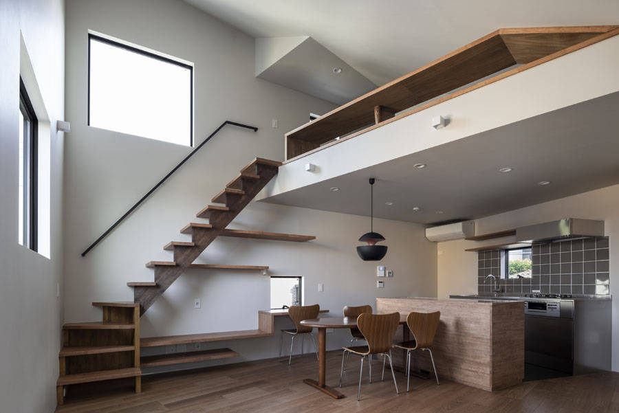 各部屋を建物のカタチの中で、最も適する位置に落とし込む。そこにはマンションのような、4隅が直角の整形の居室は存在しない。
