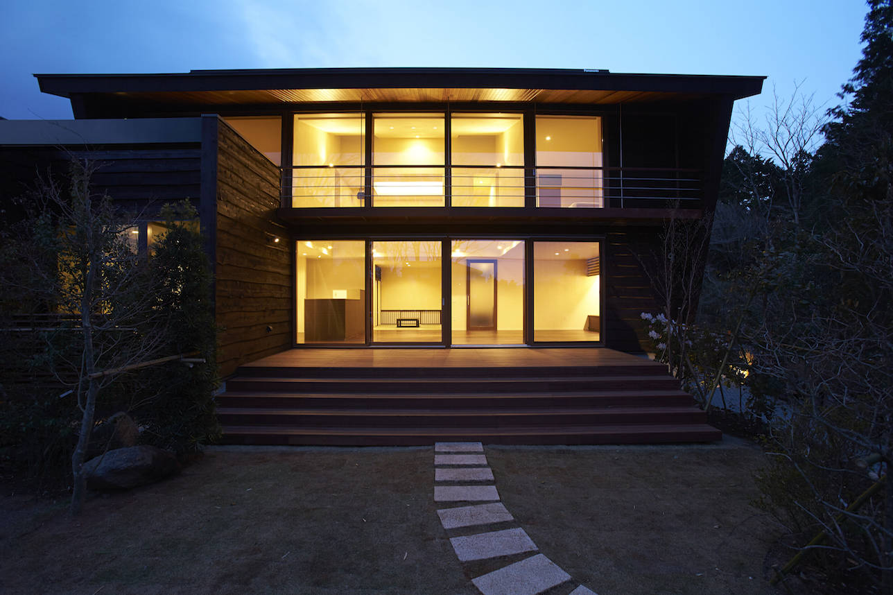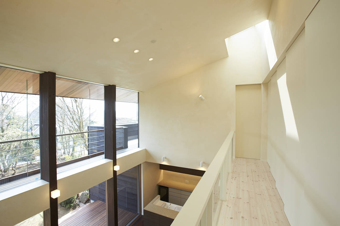 神奈川県箱根町元箱根の芦ノ湖に程近い静かな別荘地での掛け流しの温泉つき木造2階建ての別荘です。周囲の視線を気にしないですむように各室配置を考慮しました。
