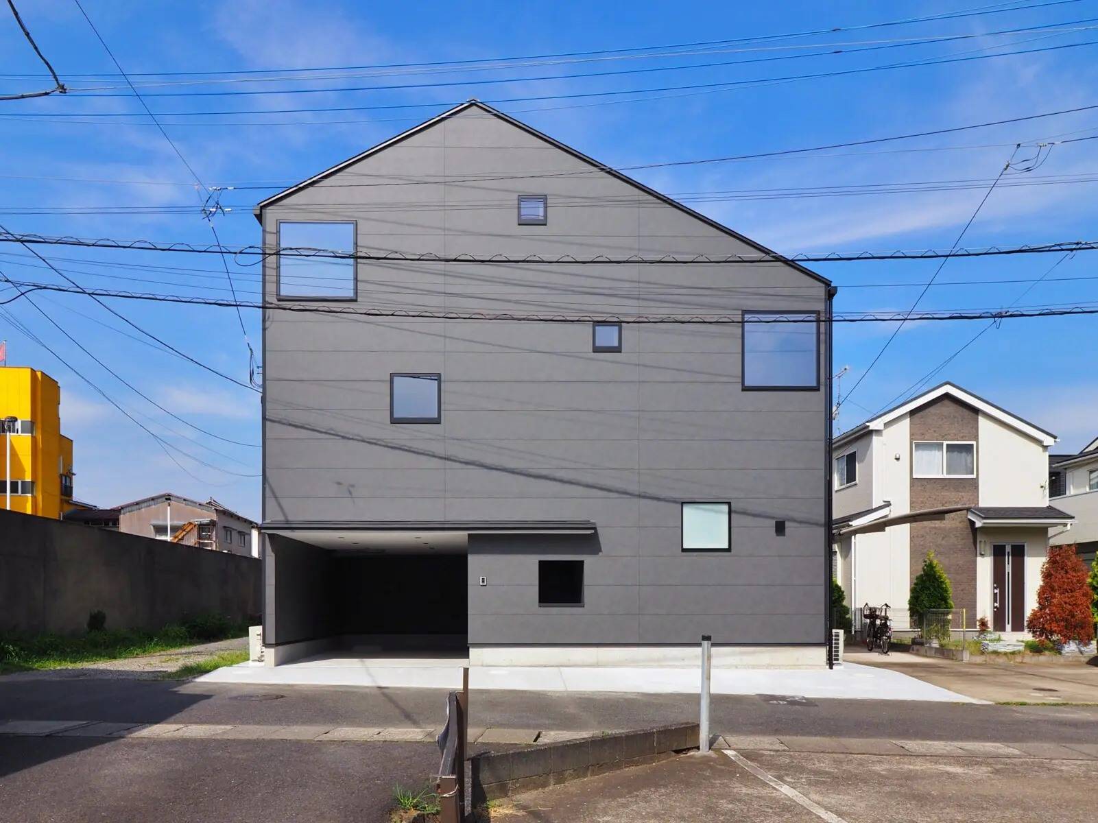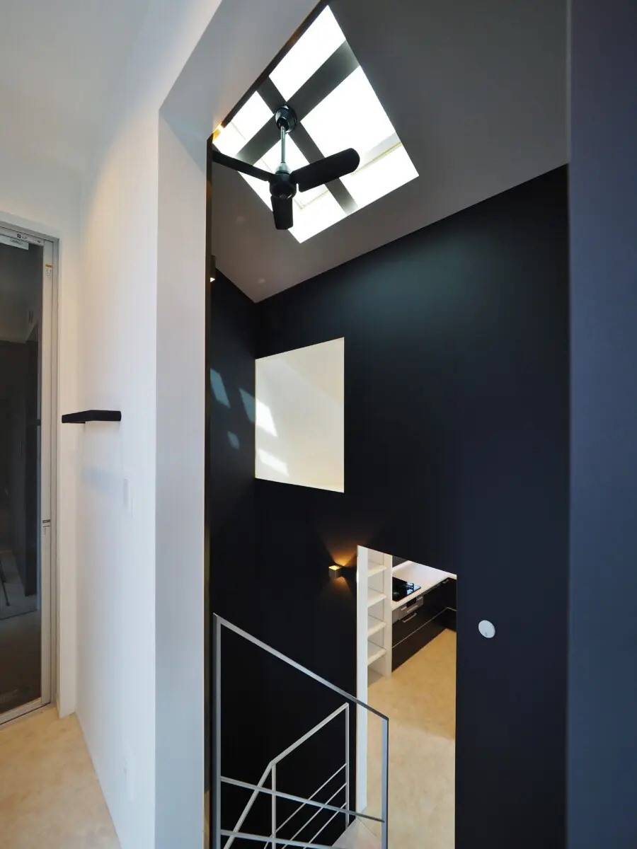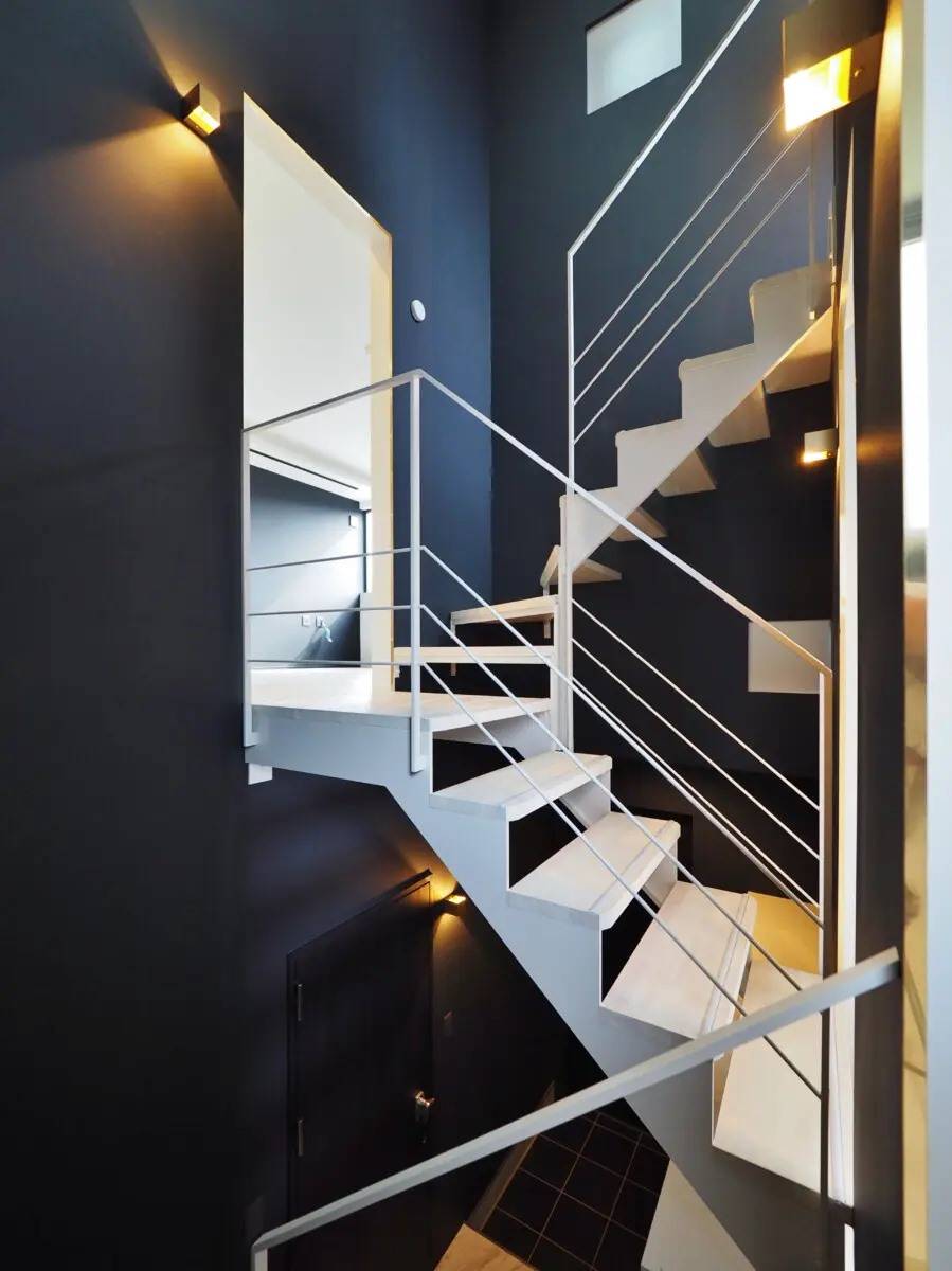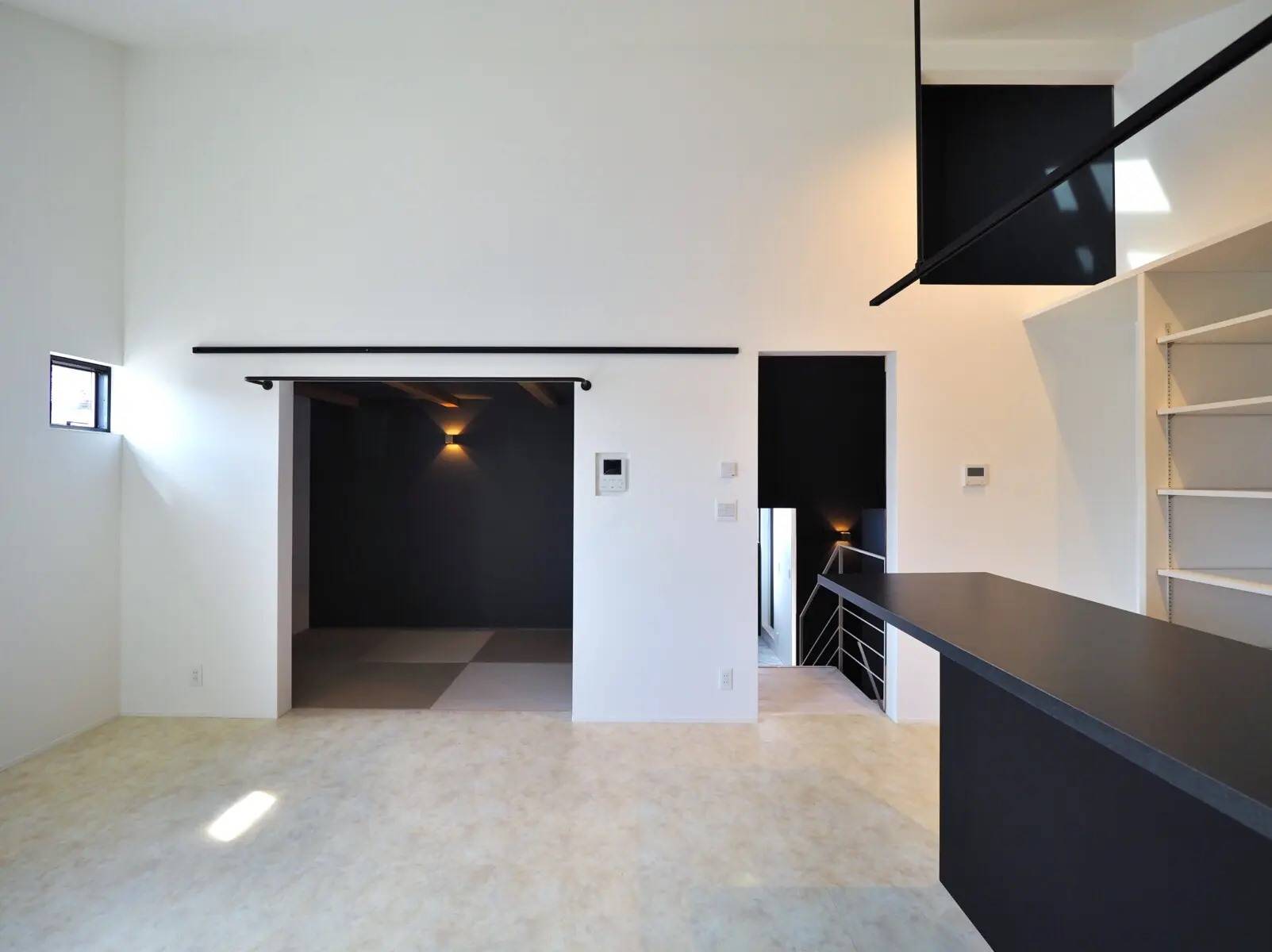 白、黒、グレーを基調とした無彩色の家。