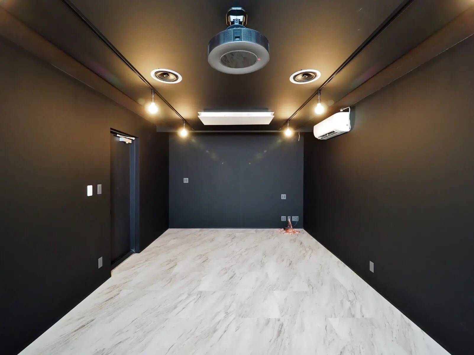 間接照明として七色に光るLEDテープを設置したいというご要望から、照明の色によって空間を演出できるように無彩色を中心にカラーコディネートをしました。
