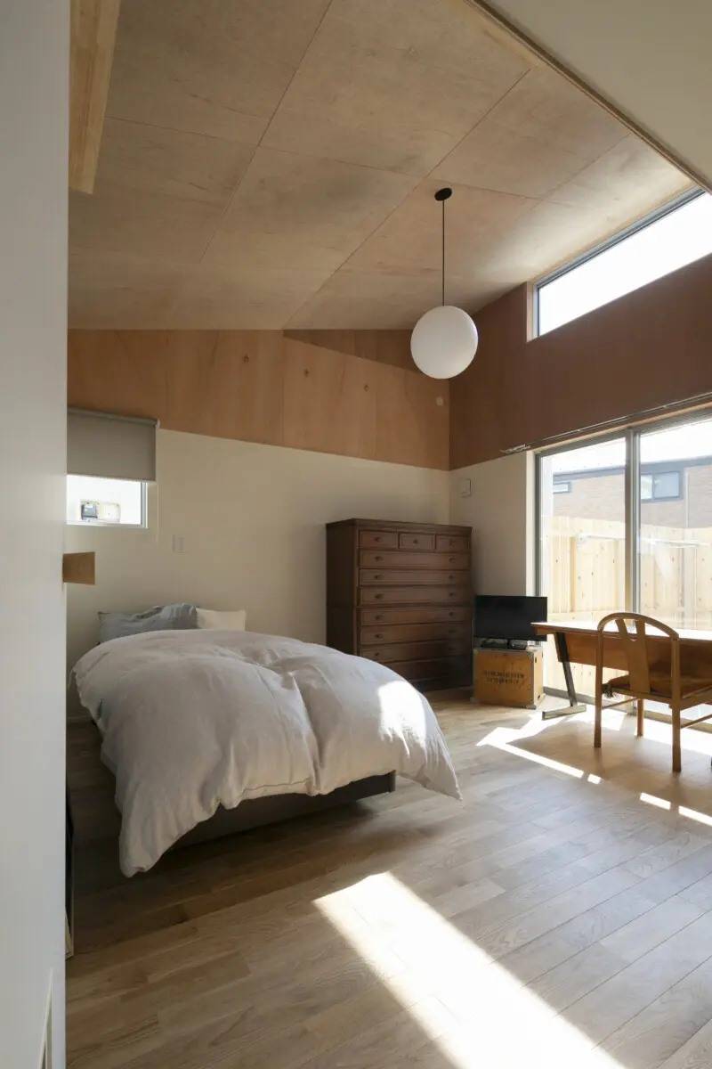 限りあるコストの中で、上品でおしゃれな家具を活かすため、塩ビタイル等の新建材や既製品を極力使わずに、下地などに使われるラワン合板やフレキシブルボード等の経年変化する素材を仕上げに使い、味のある空間としています。