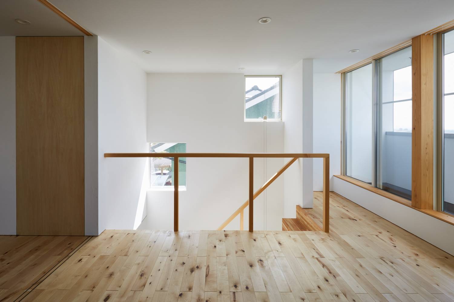 そして、これらの中間領域に面して、全て壁に引き込むことができる様にした木製建具を設けた。東側は3.6m×2.2m、西側は5.4m×3.0mの大きな開口部である。