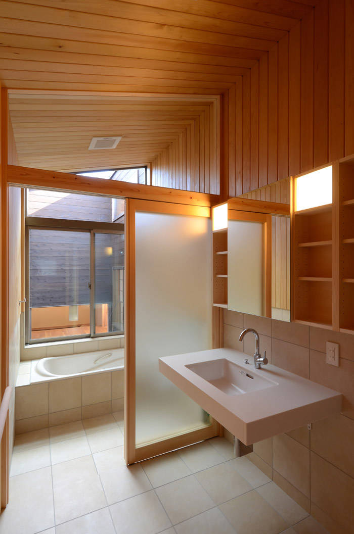 内、外部とも木をふんだんに使用し、構造は杉の現し。外壁は杉板。床はナラ、浴室はヒノキなど、木の種類も適材適所で変えており、「木の競演」が見られる正真正銘の木の家です。