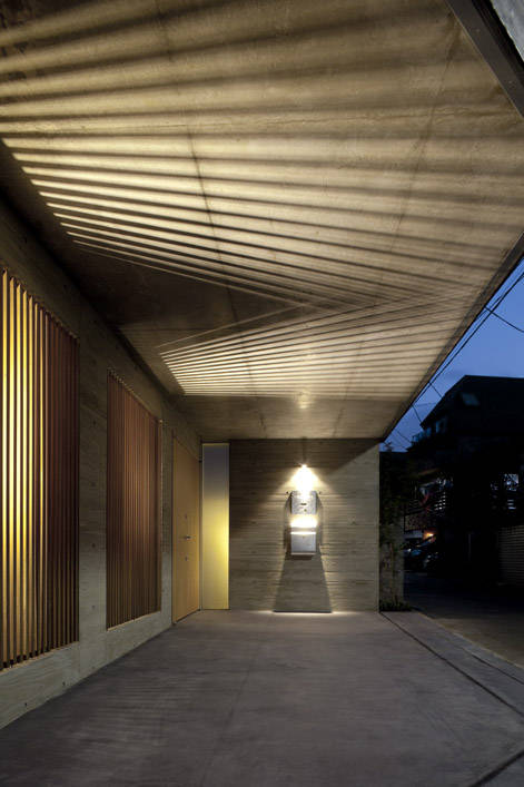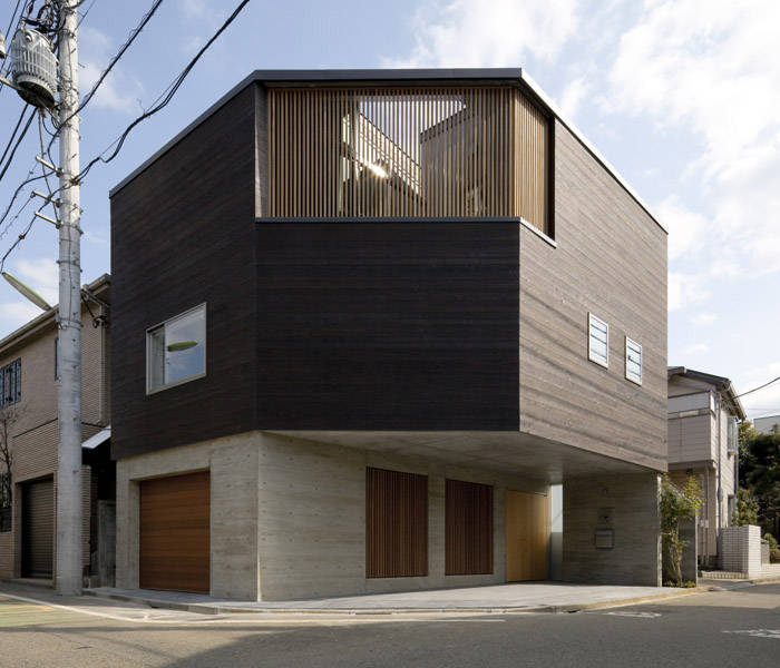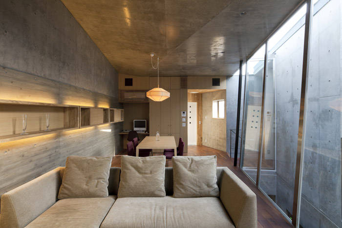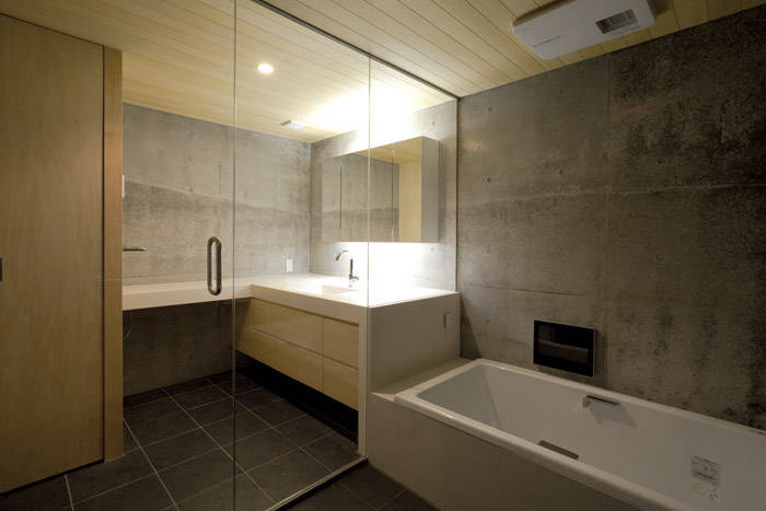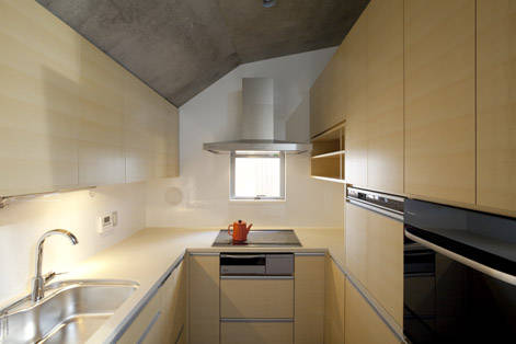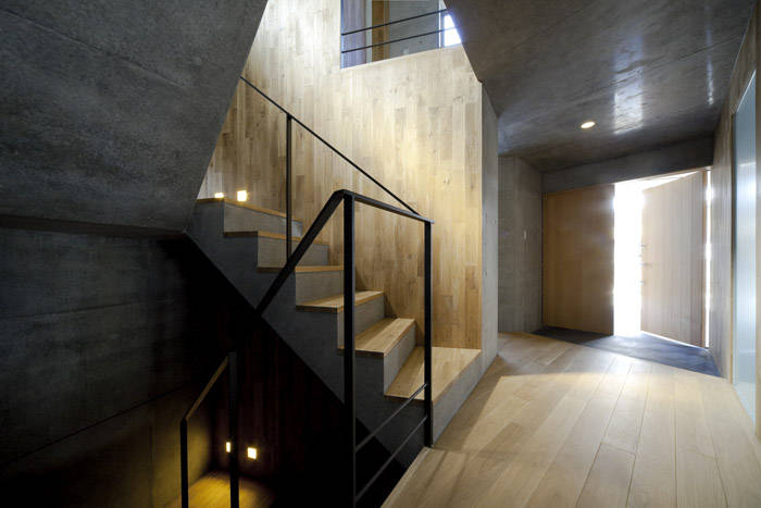 クライアントのご職業は写真家。職業柄、光、造形、テクスチャーにはものすごくこだわりがあります。光に関しては、南向きの明るい光より柔らかく制御された光によって満たされる空間を希望され、造形に関しては、垂直水平の箱のような空間より、ナナメの線を生かした変形の空間を望まれ、北向きの変形敷地をわざわざ探して来られるという徹底ぶりでした。テクスチャーに関しては木とコンクリートを上手に組み合わせて欲しいというのがご要望でした。