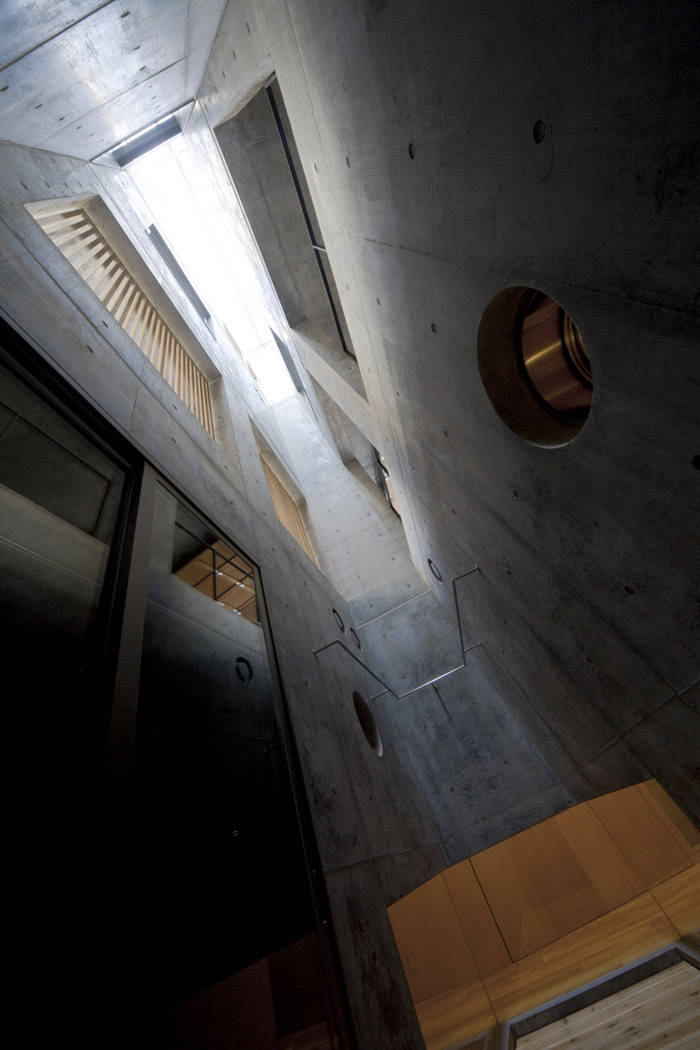 それらを実現するための面白い仕掛けとして思いついたのが、このスリット状の“裂け目”です。外観からはまさかこんなものが内包されていようとは想像がつかないと思いますが、もちろん単に意外性を狙ったものではありません。上が細く下が大きく広がっていること。南北軸に沿っているという2つの要因が、時間と空間という2つの位相にドラマティックな変化をもたらします。