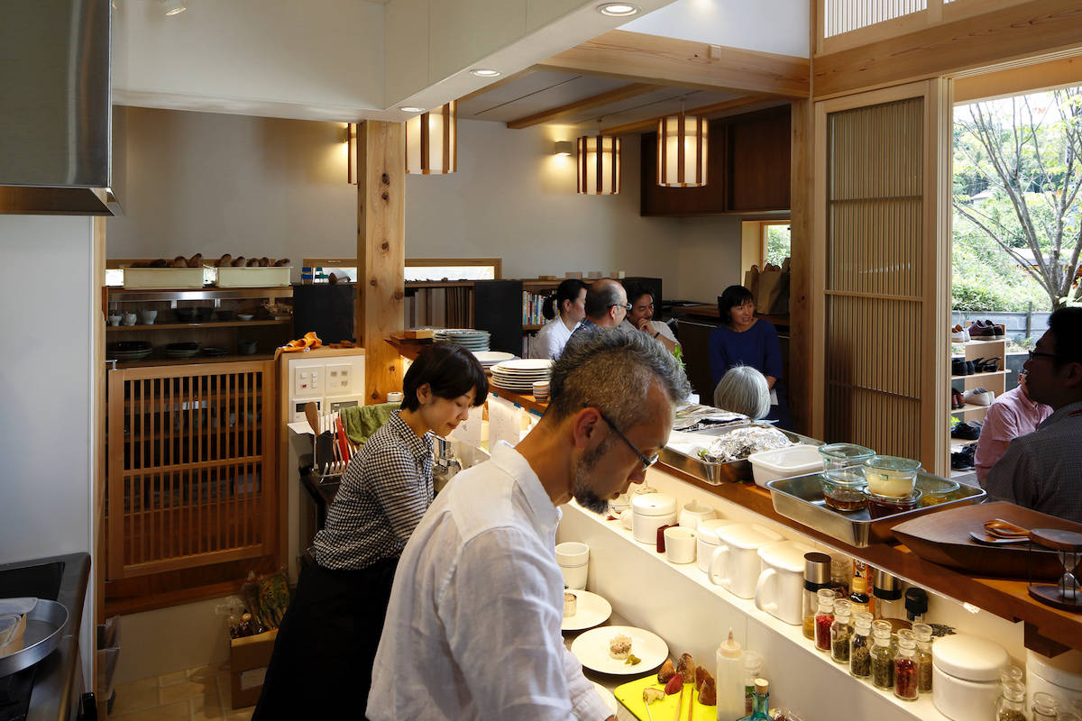 この建物で重視したことは、既存の母屋との良質な付き合い方。言い換えれば、調和しつつ主張する建物をつくることです。この関係を「夫婦」に見立て、母屋を「夫」、むすひを「妻」ととらえ設計しました。
