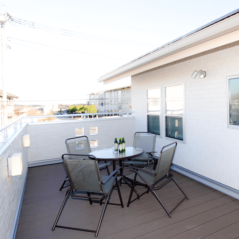 ベランダで乾杯