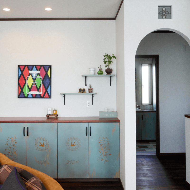 ドア、カウンター扉もお施主様自ら塗装したもの