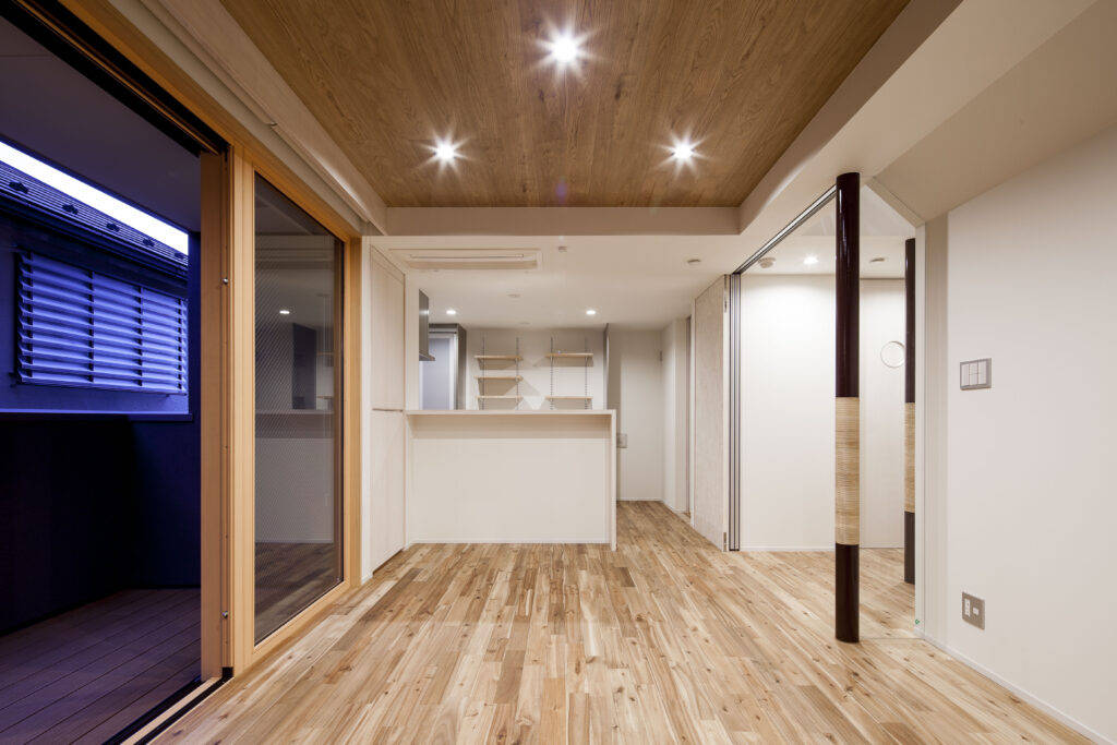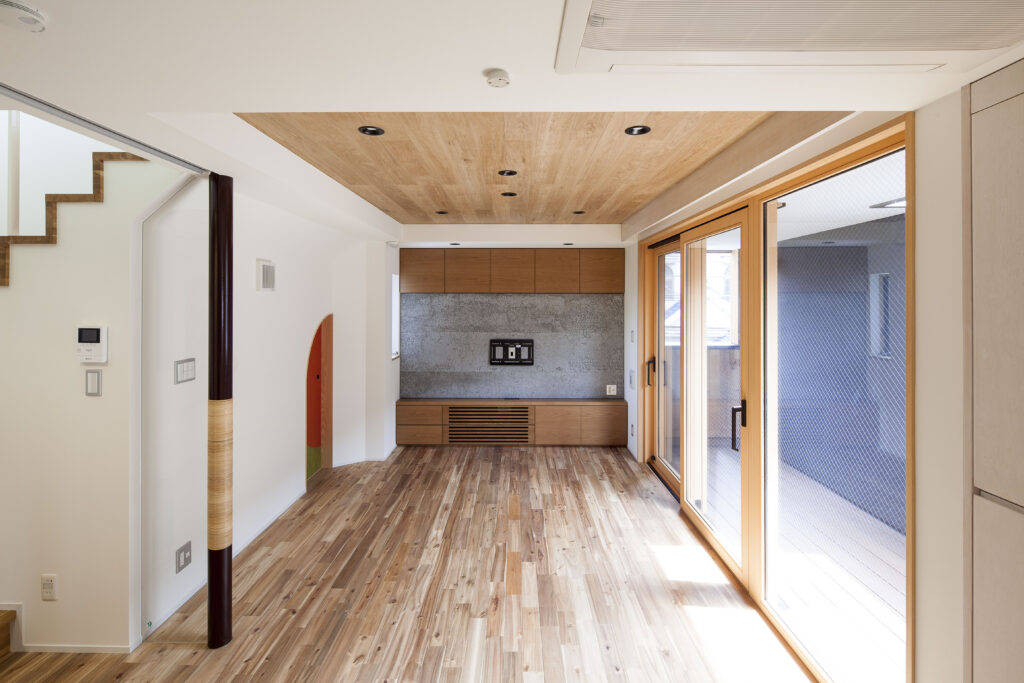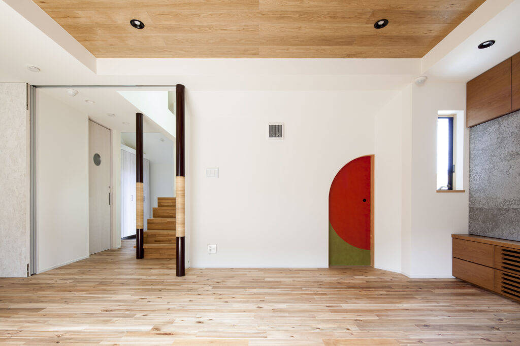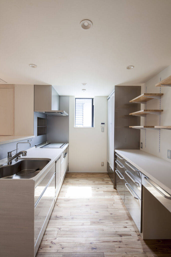 親世帯は、高齢者対応ということで和室、水廻りを含め室内すべてで床段差解消し、建具類は玄関入り口もすべて引戸仕様になっています。使い易くかつ安全に暮らしていただくことを第一に計画しています。