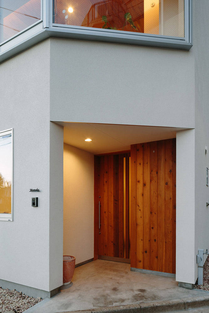 敷地は角地の建ち、南側道路敷地の反対には公園が立地しています。敷地隅切り部反対側には桜の木があり、春になると満開の桜が咲き誇ります。そういった周囲の環境に対し、リビング・ダイニングの配置された2階部分には角地の形状をなぞるように大きな開口部を穿ちました。
