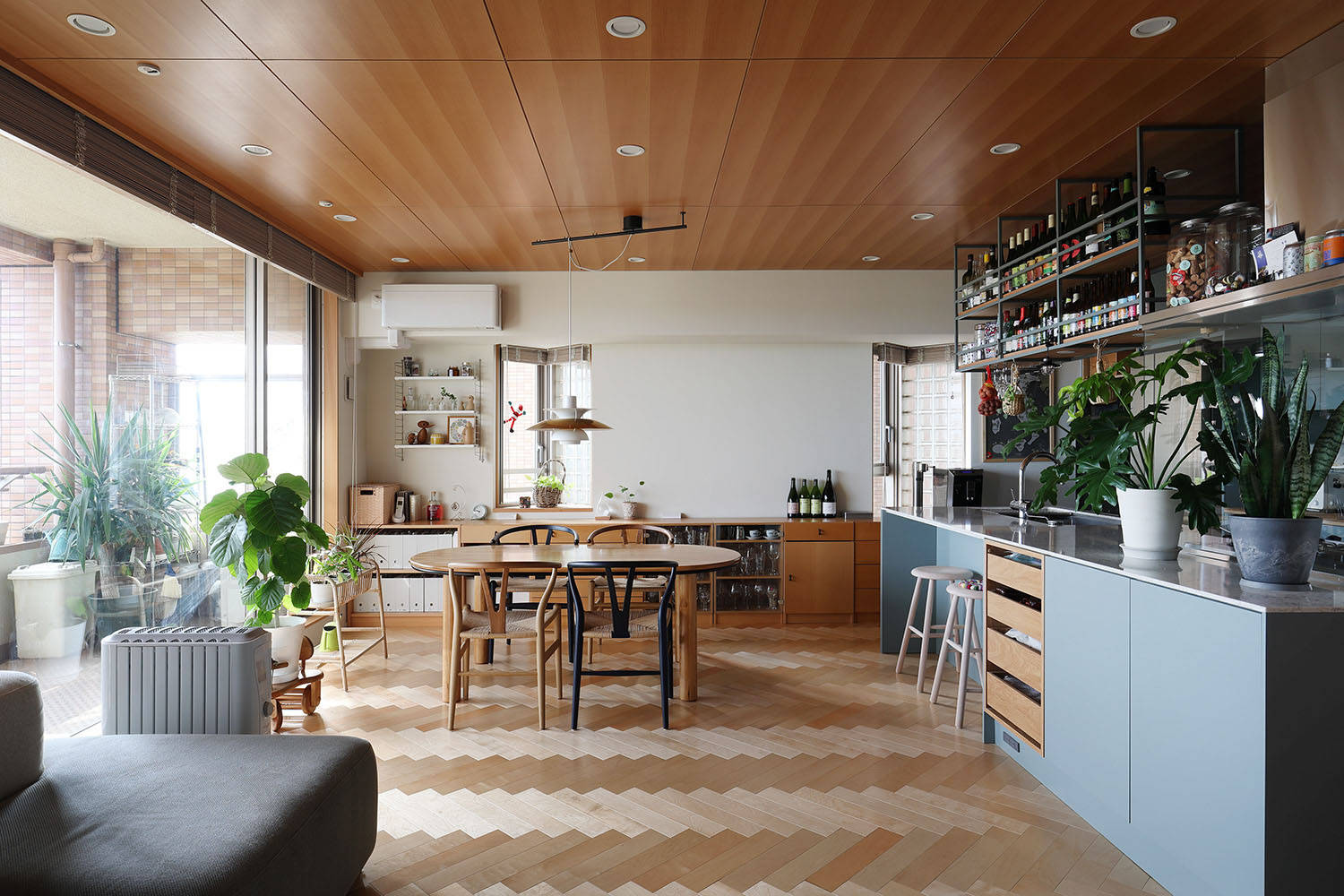 既存の間取りではリビング・ダイニングからやや奥まった場所に壁に向かってキッチンが配置されていたため、家族と顔が合わせられず料理をすることが常でした。
