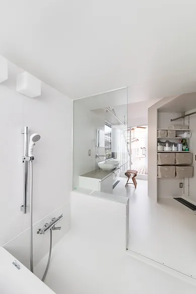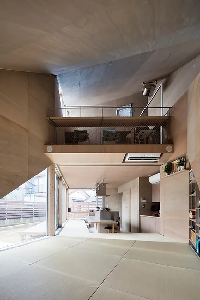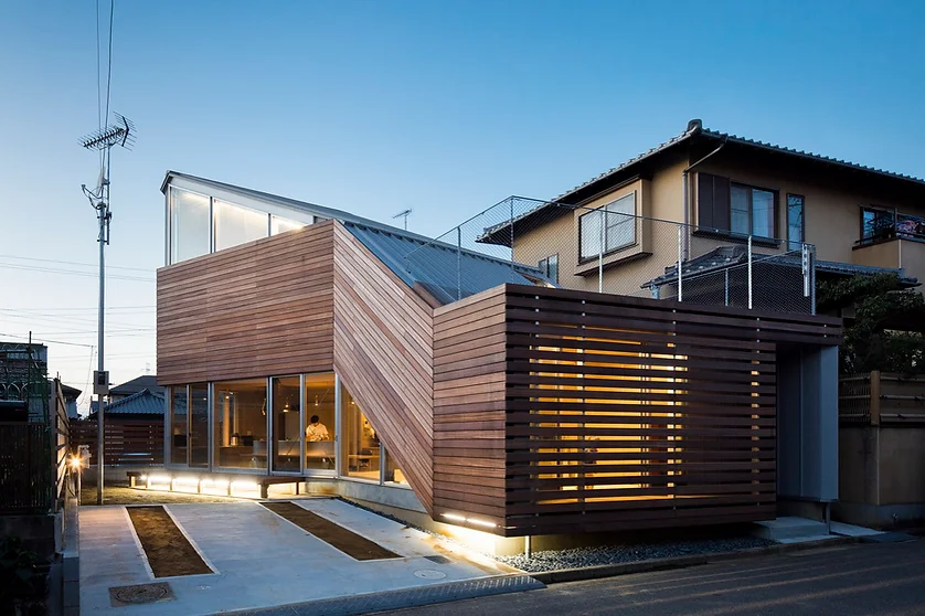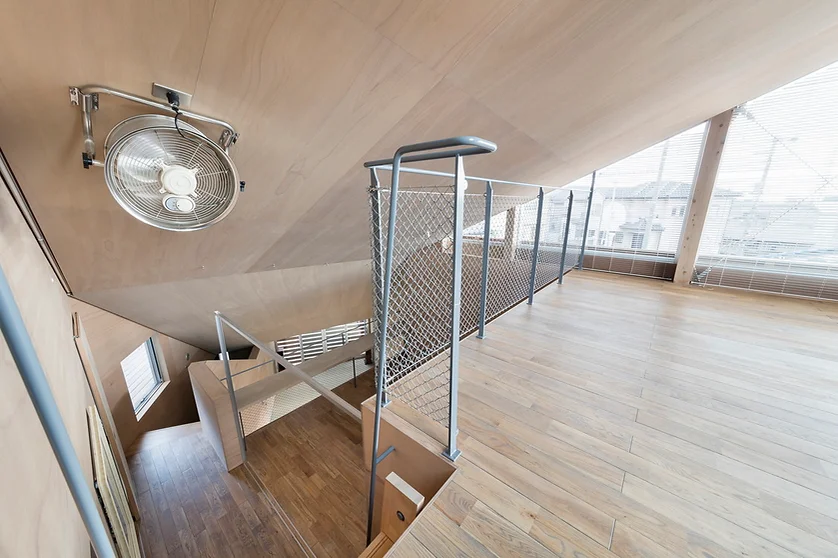 不思議な形をしていますが、クライアントの近隣やまち、家族への気遣いと無用に大きな空間を求めず、必要なだけの空間をと言う考えがこの形を生みました。