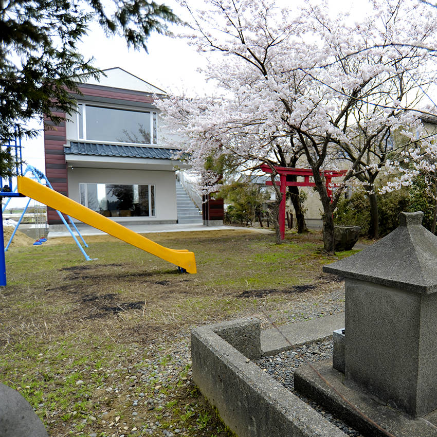 新潟県長岡市の田園地帯の12世帯ほどの集落のための集会所の老朽化にともなう建替えである。2004年の中越地震で被害は少なかったが、一部補修している。現在、住民達はほとんどが兼業農家だが、作物の豊穣を祈念して敷地内には社や塚が奉られ、四季折々の催し物や祭りが大切にされ、また子供達の遊び場でもある。そこで、住民のコミュニティーの中心に相応しく、豪雪にも対応すると同時に、住民の高齢化に対応しバリアフリーに配慮することも大きなテーマであった。