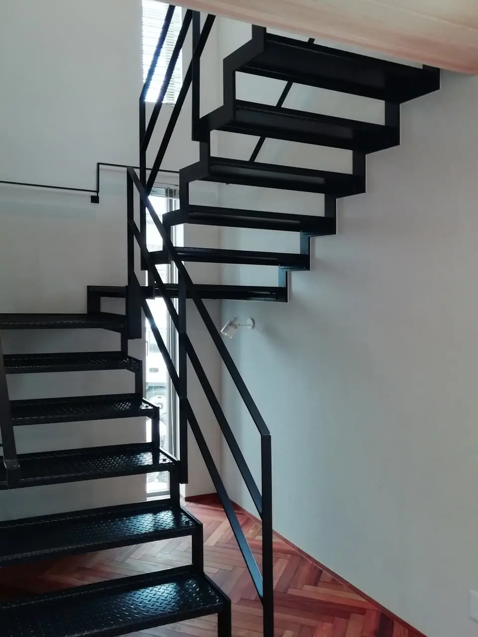 LDKにはタタミコーナーが連続しており、お子様の遊び場や客間としても利用できます。また、1階と2階を繋ぐ階段は鉄骨階段で踏面は縞鋼板でワイルドな仕上となっています。