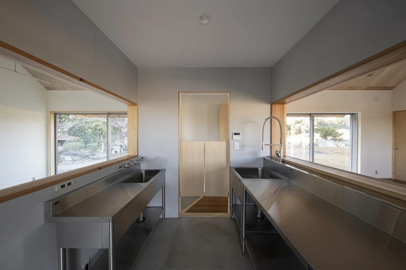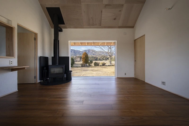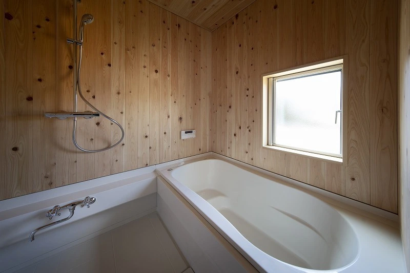 南側は主要道路に面する事から開口部を最小限にしていますが、良好な景色が見える北側は浴室も含め外に開いた計画としており、LDKはフルオープンのワイドサッシで部屋に居ながら外の風景を楽しめるようになっています。